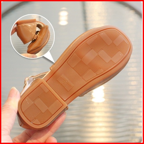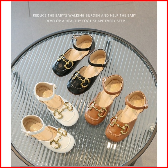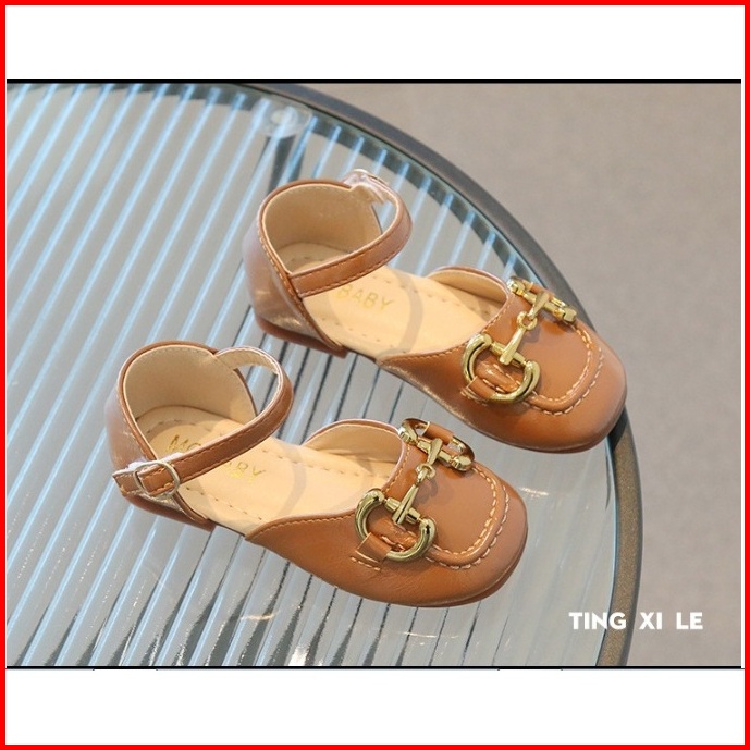 V 601 Sepatu Kulit Anak Perempuan Bergaya Minimalis Fashion Setengah Sandal Kaki Persegi Sepatu Datar Anak-anak Nyaman B