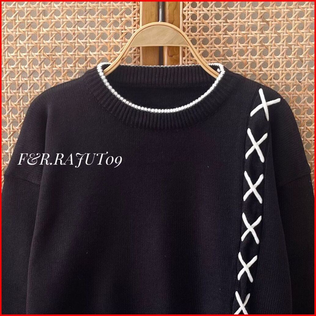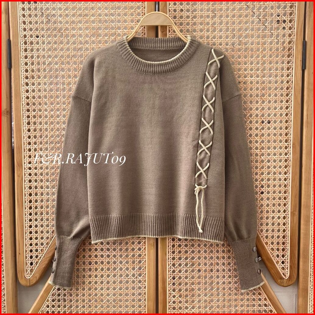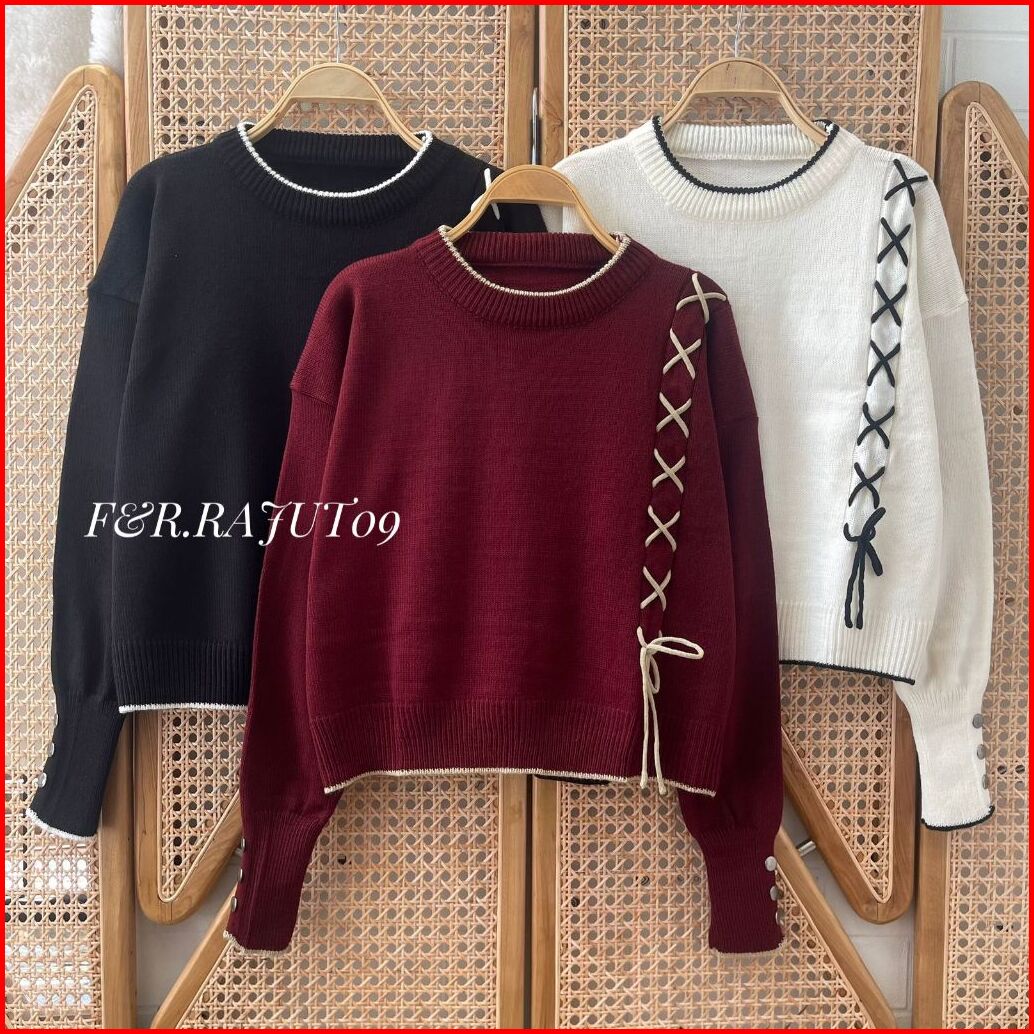 F R Dila Blouse - Atasan Sweater Crop Rajut Wanita Motif Tali Kur Korean Style