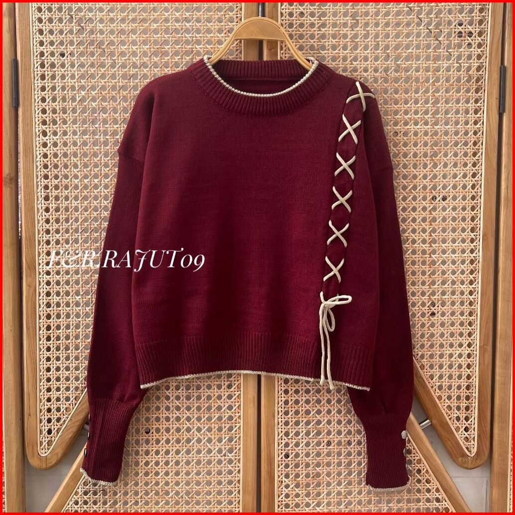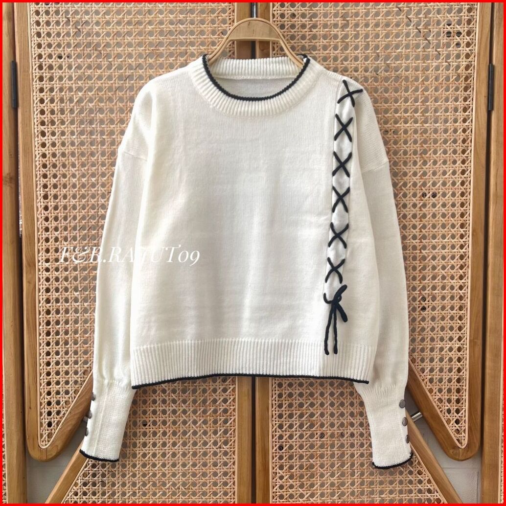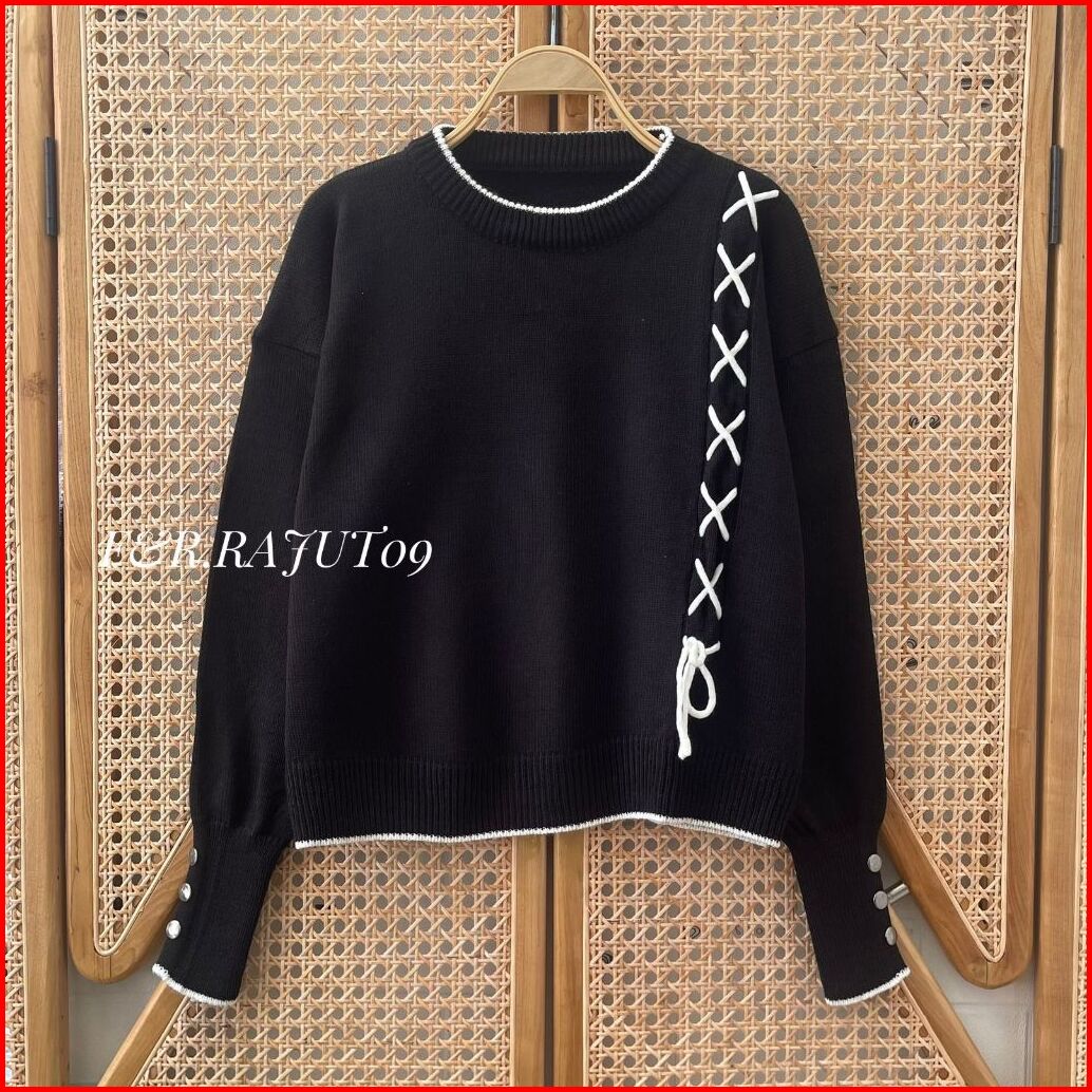 F R Dila Blouse - Atasan Sweater Crop Rajut Wanita Motif Tali Kur Korean Style