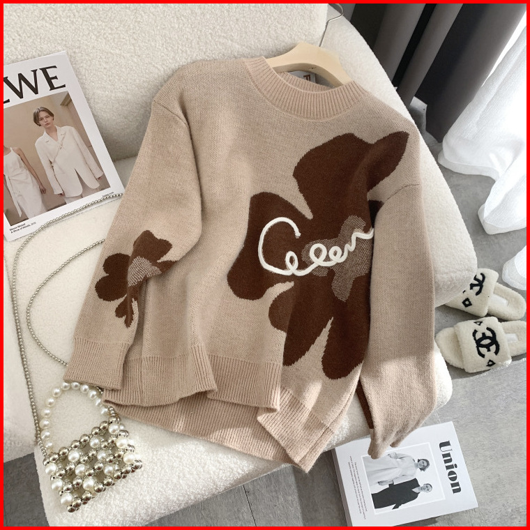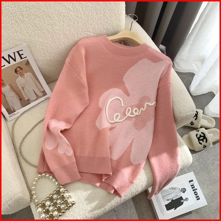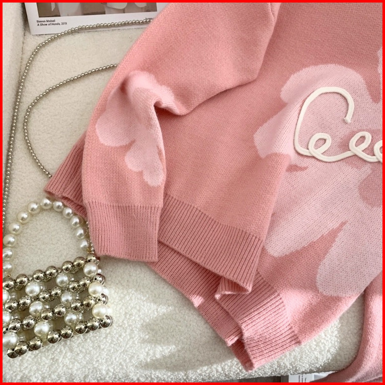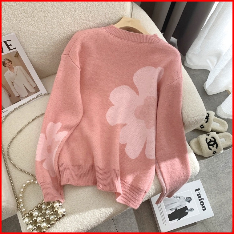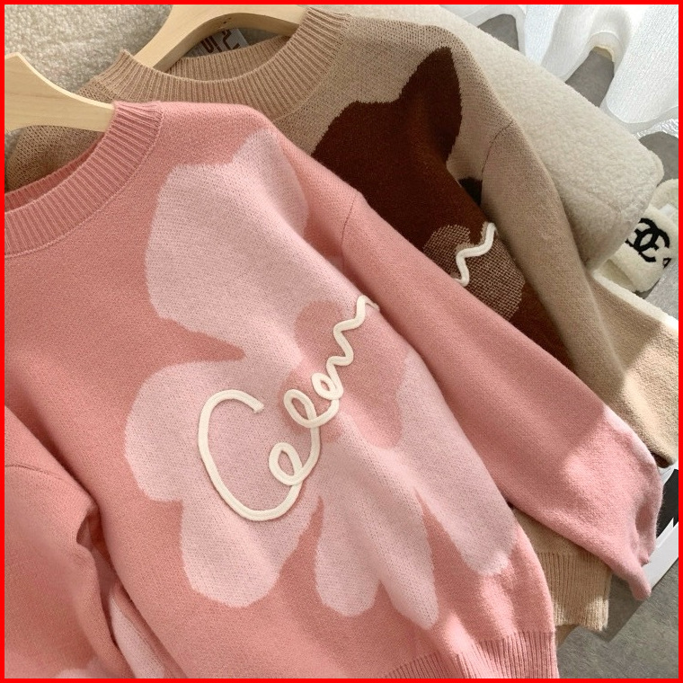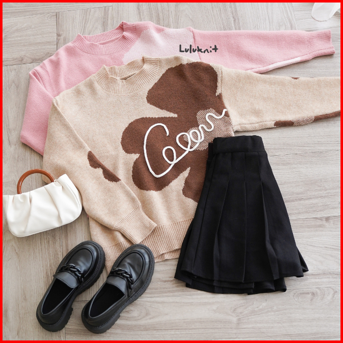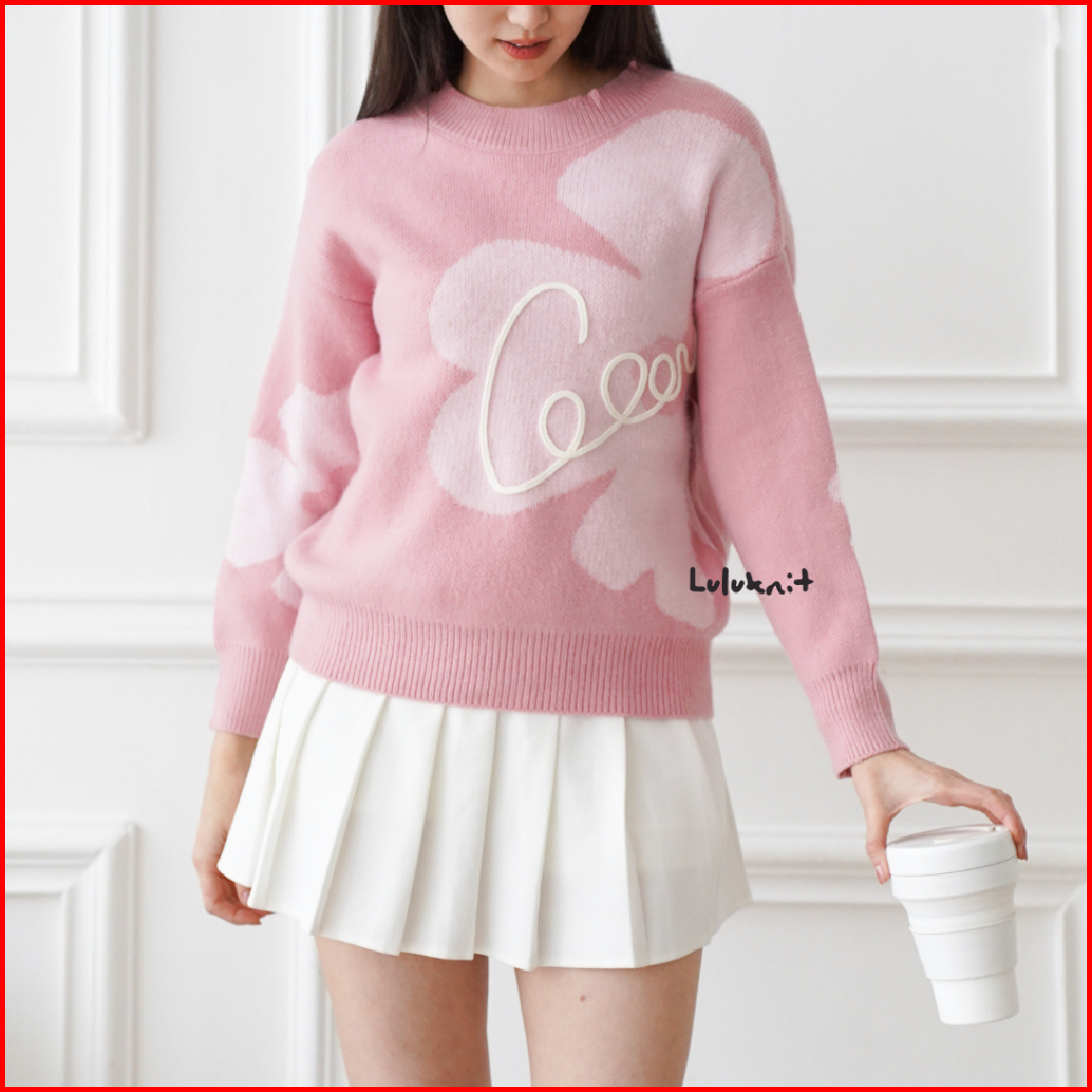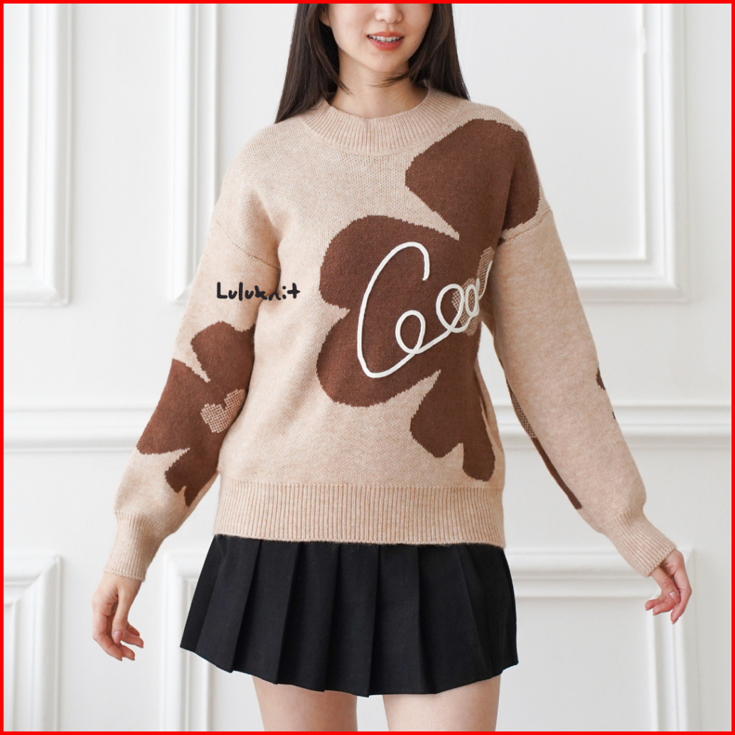 Lulu - Atasan Sweater Rajut Knit Motif Floral Bunga Style Korea 6559m
