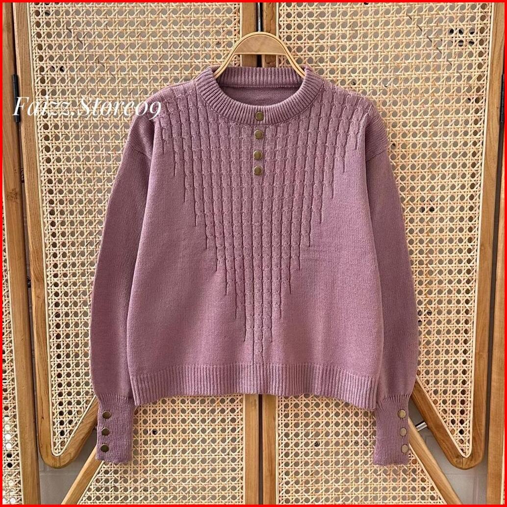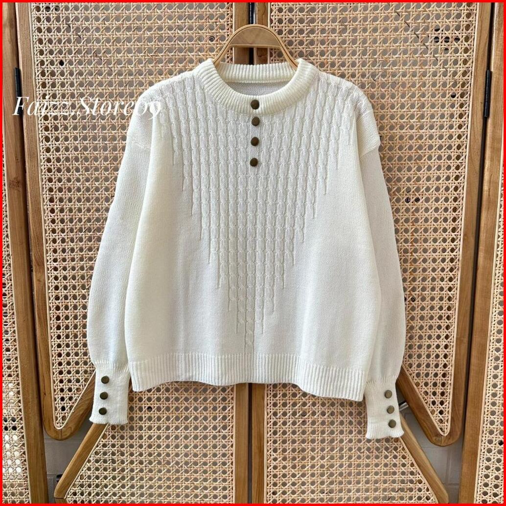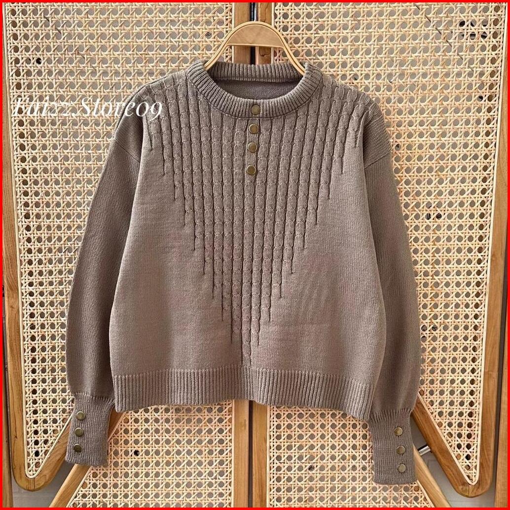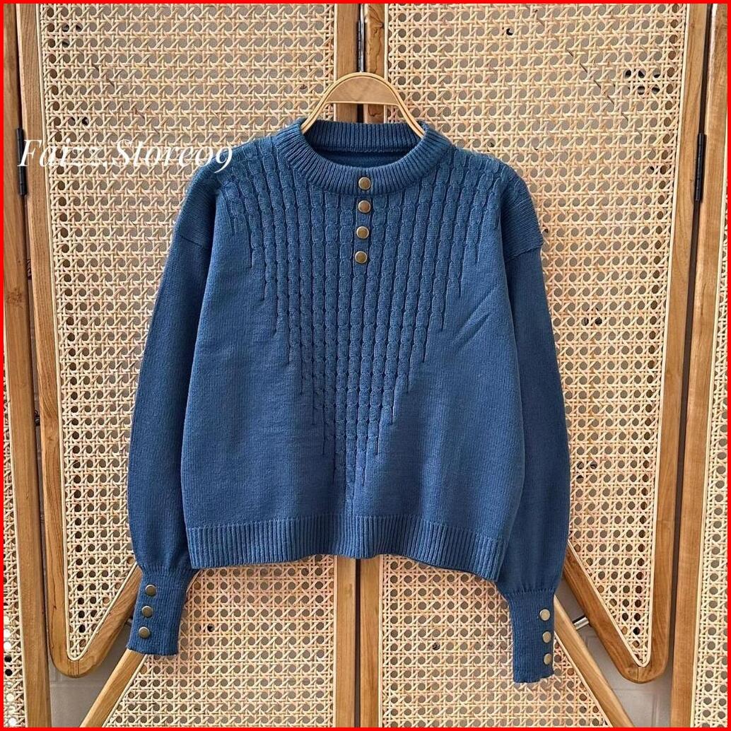 Kelly Knits Atasan Sweater Rajut Motif Cable Kancing Lengan Panjang Wanita Premium Kekinian