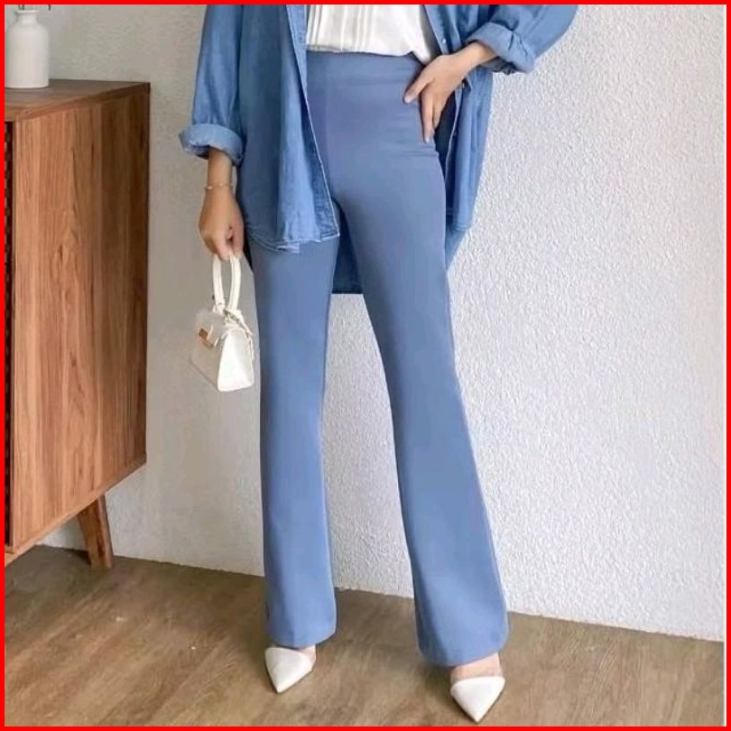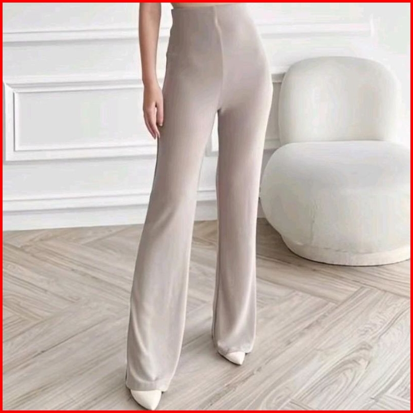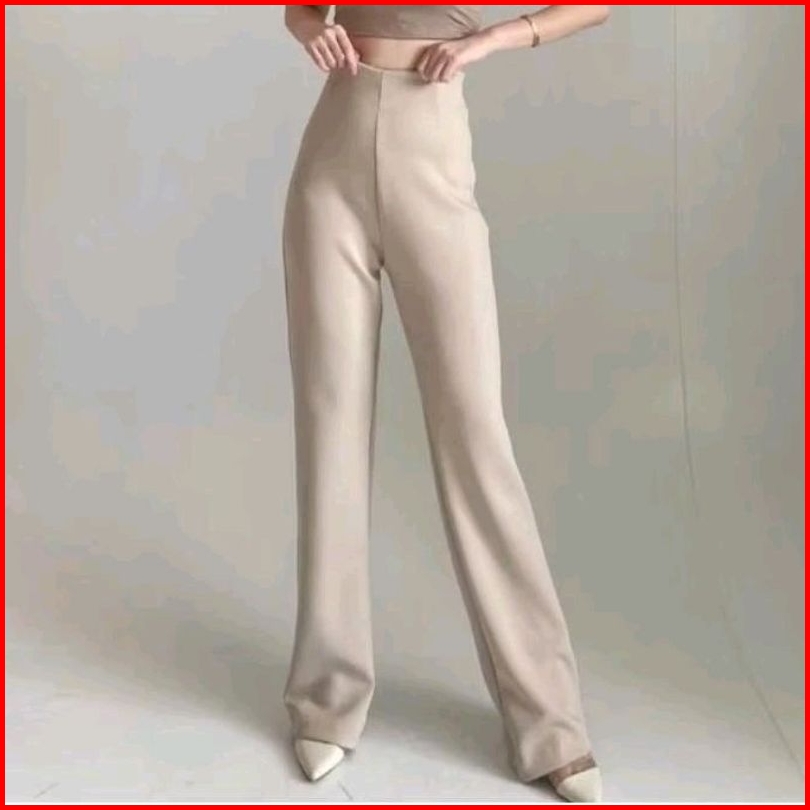 Celana Scuba Flare Panjang Cutbray Highwaist Wanita
