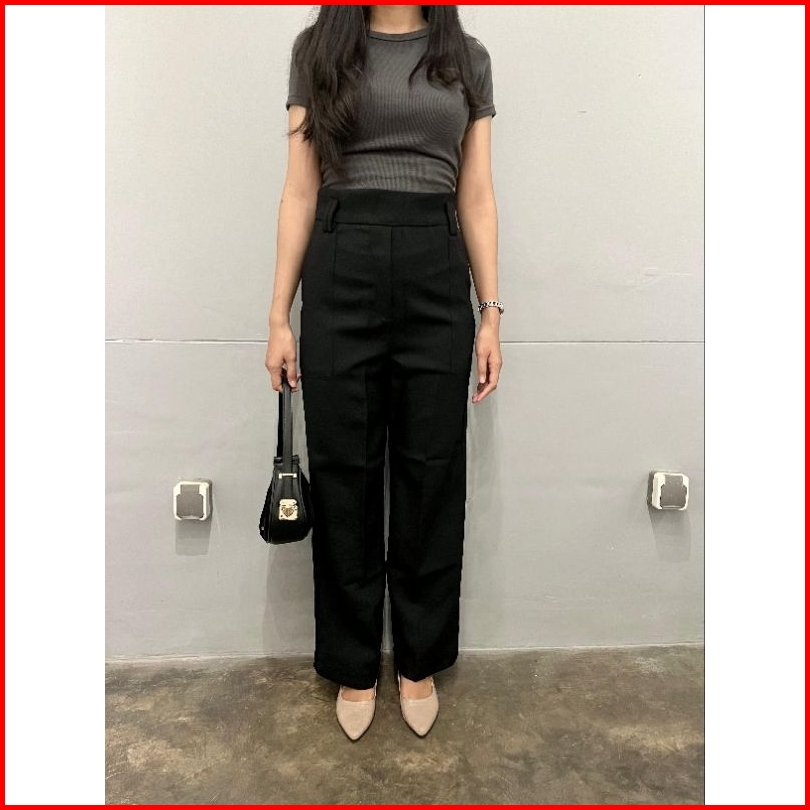 Diora Highwaist Pants - Celana Highwaist Pants Wanita Kulot Celana Panjang