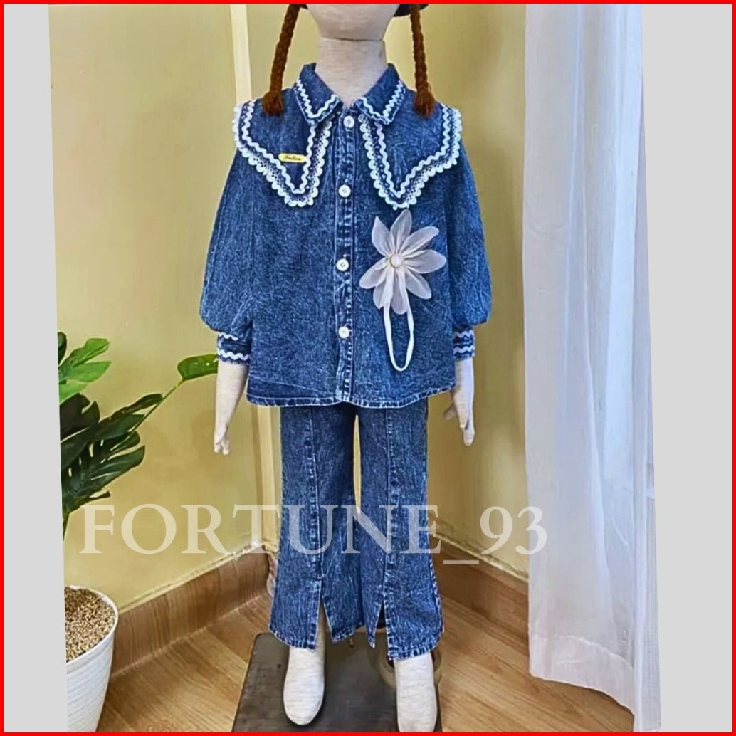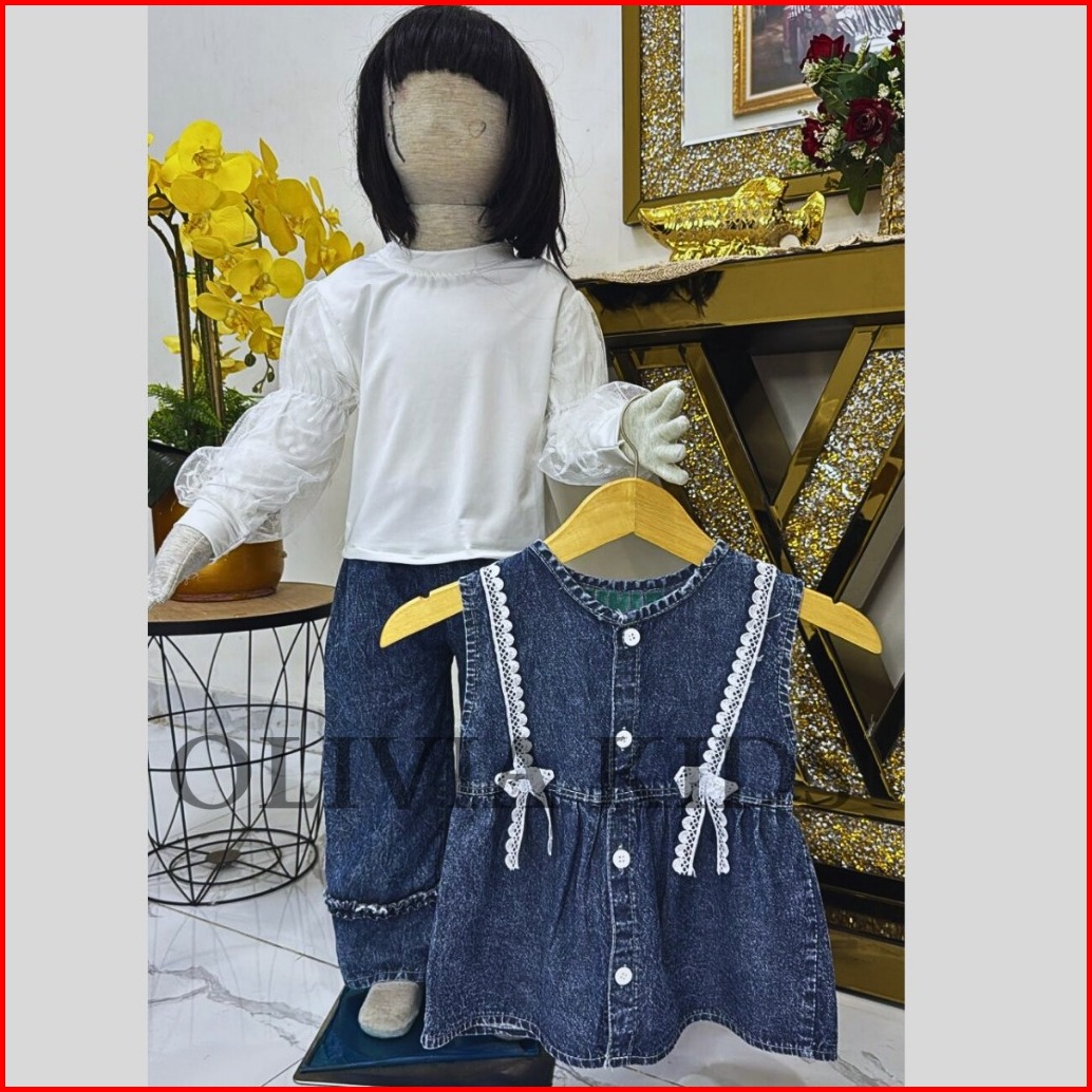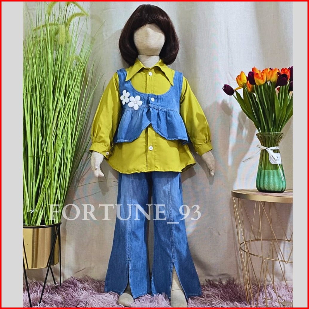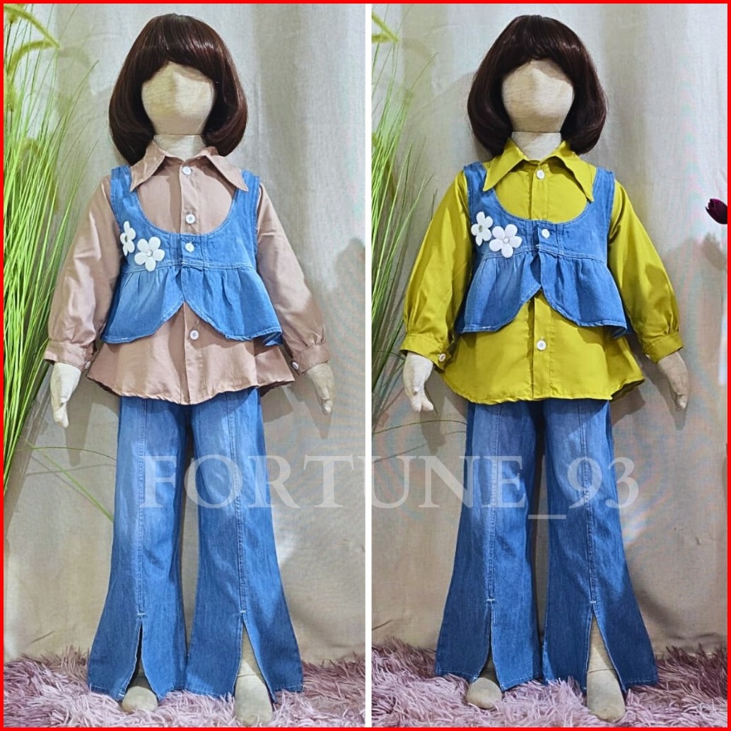 Stelan 3 In 1 Anak Perempuan Import Korean Style Mix Rompi Jins Celana Jins Cutbray Usia 3 - 10 Tahun Set Anak Terbaru 2
