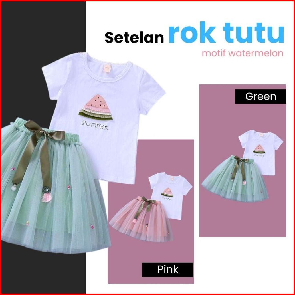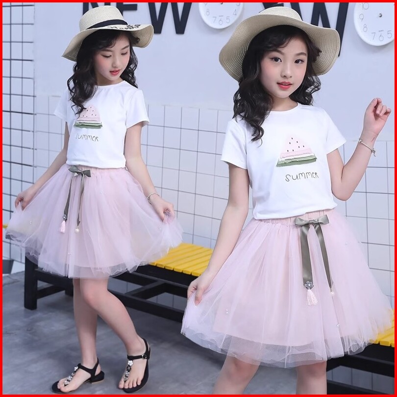 Princesscoco 1-9 Tahun Setelan Anak Perempuan Rok Tutu Baju Bahan Katun Lengan Pendek Oneset Lucu