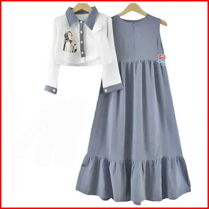Hijab Set Kids Stelan Anak Permpuan Fashion Set Anak Viral 2024 Crinkle Sablon Karakter