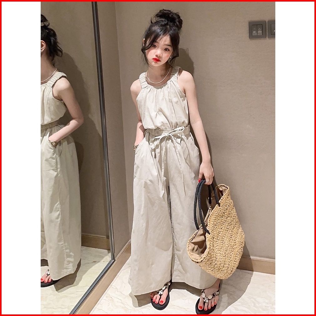 Kidsfo-92 Setelan Set Anak Tanggung Perempuan Sleeveless Top Pant Wide Leg