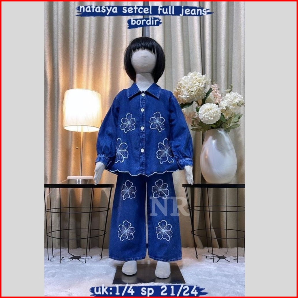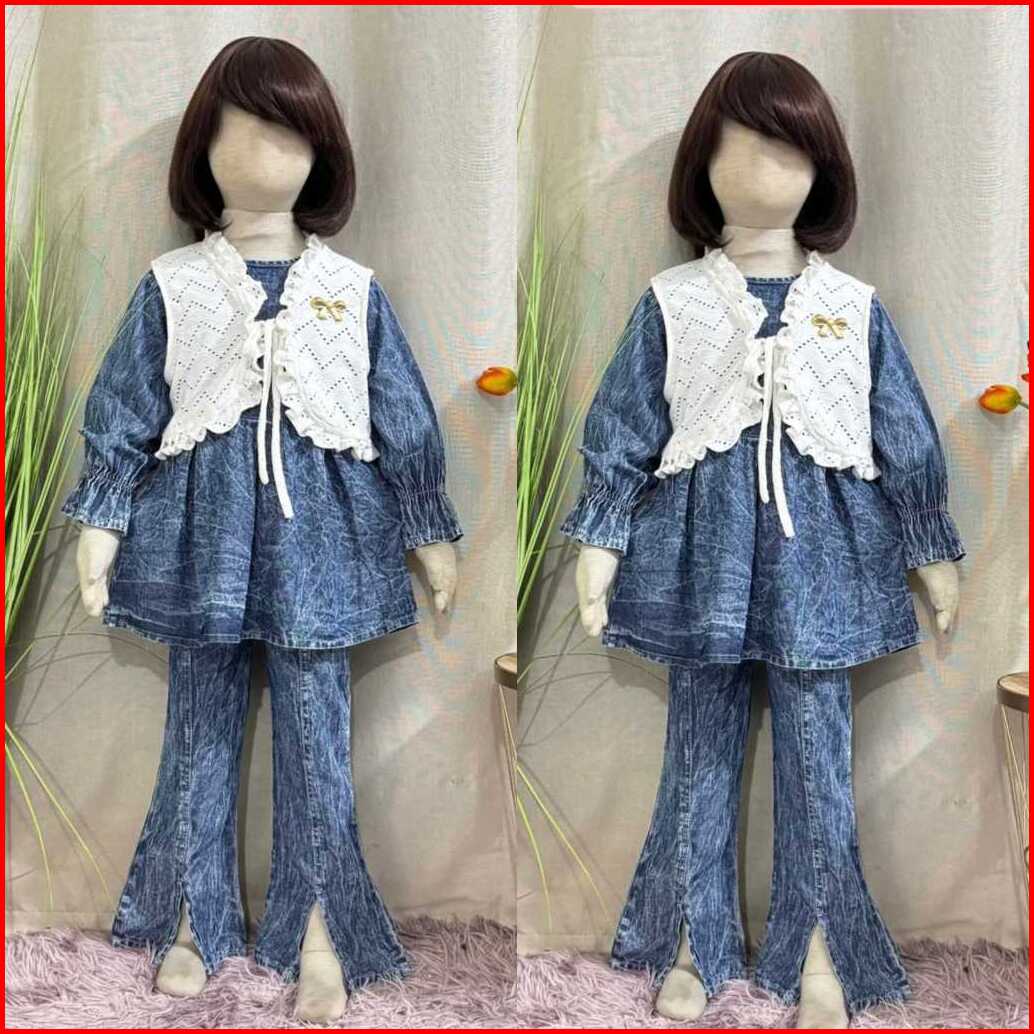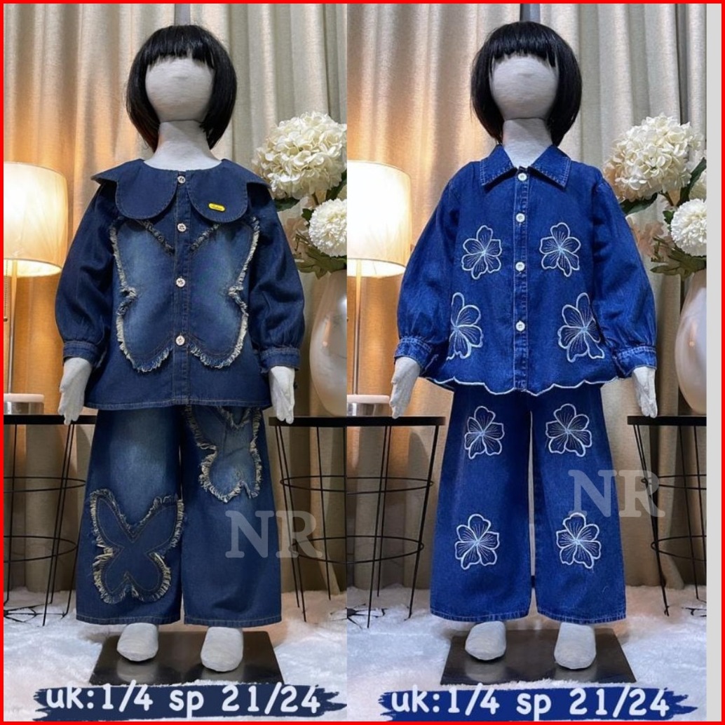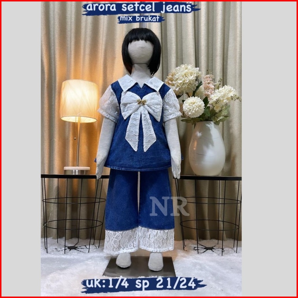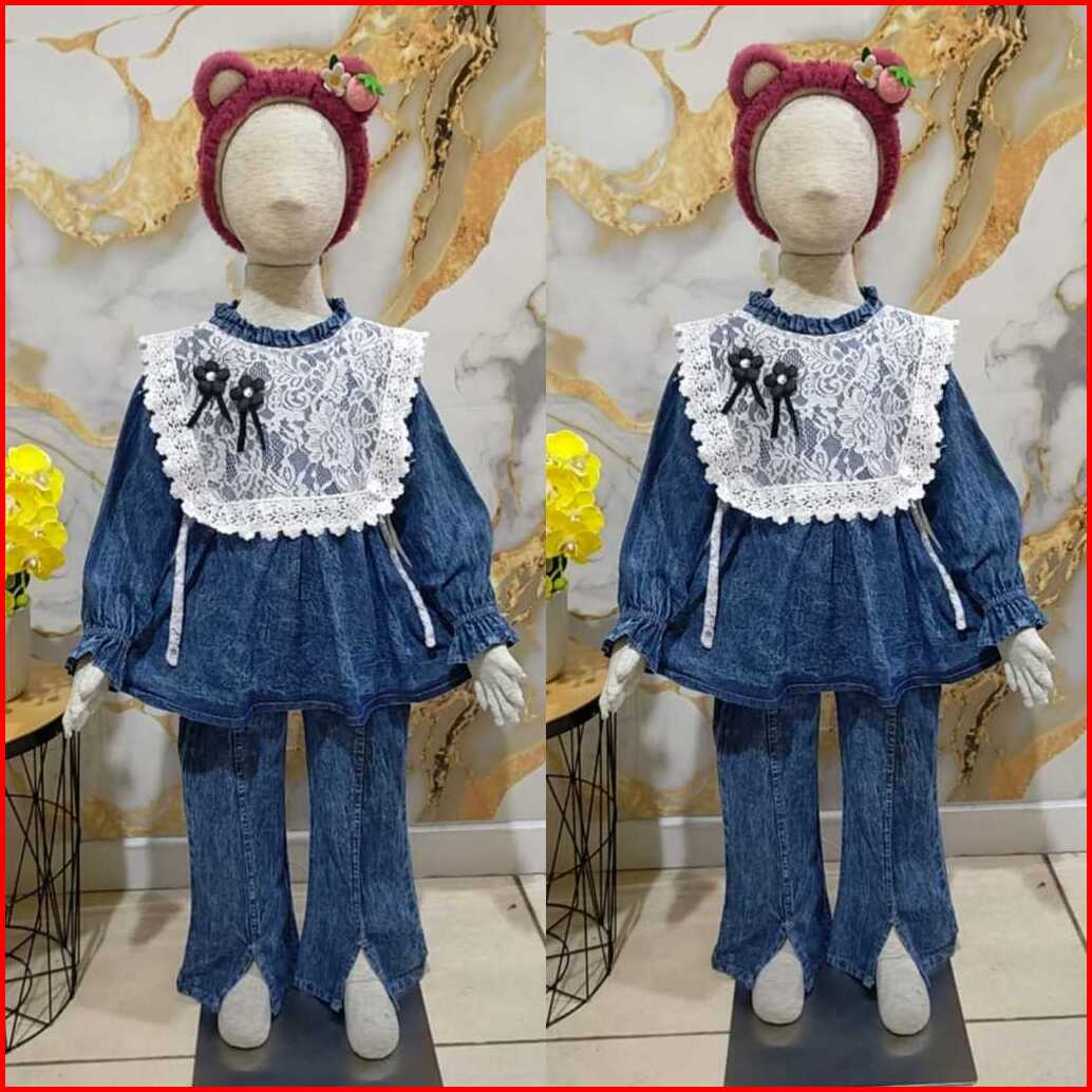 Setelan Celana Jeans Cutbray Anak Perempuan Setelan Viral Jeans Mix Brukat Anak Perempuan Kombinasi Brukat One Set Celan