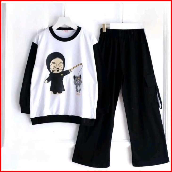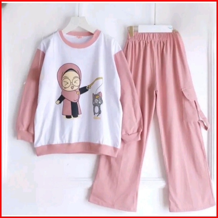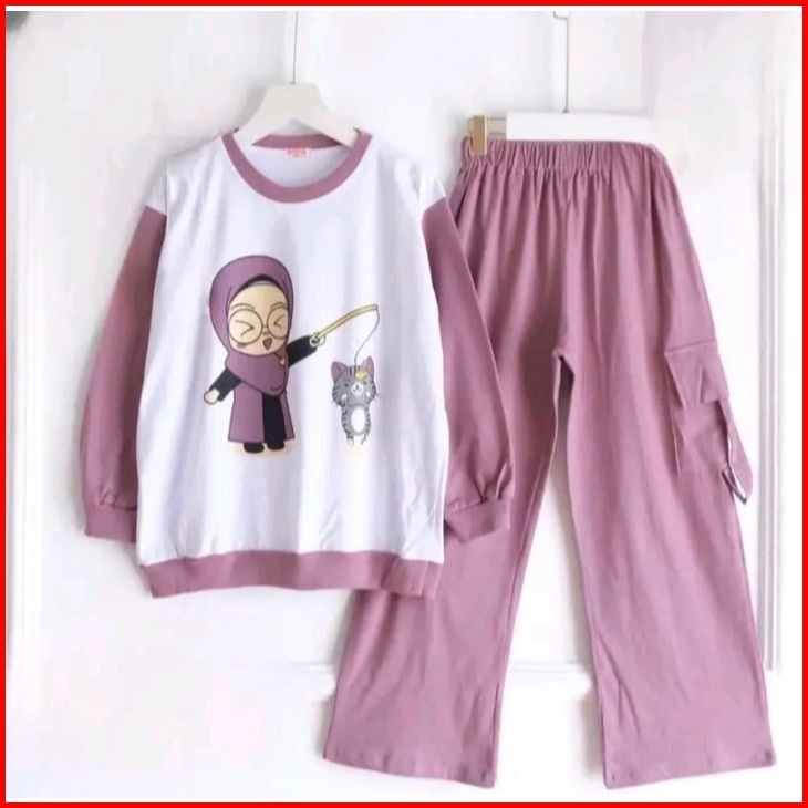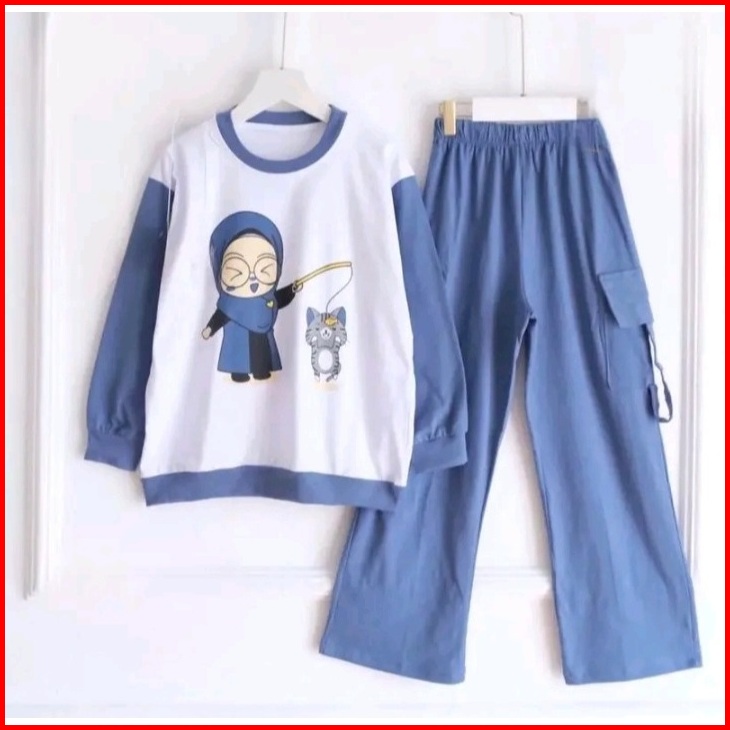 Setelan Anak Perempuan Caty Set Kids Celana Cargo Crinkle Airflow Lengan Panjang Untuk Usia 3-11 Thn