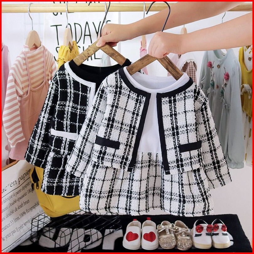 Kiddo 61 Dress Gaun Pesta Bayi Anak Newborn Perempuan Fashion Square Black White Jaket