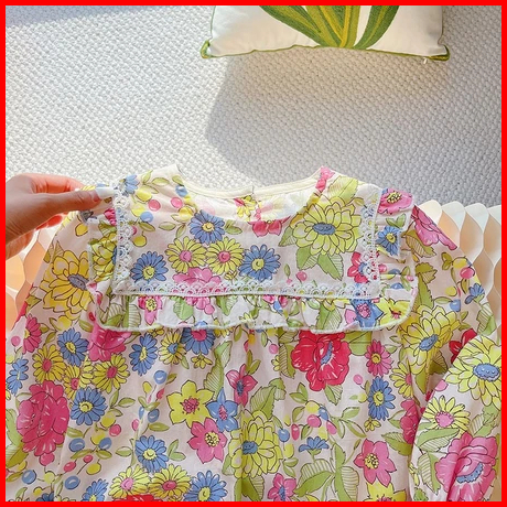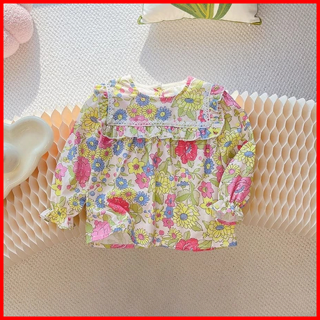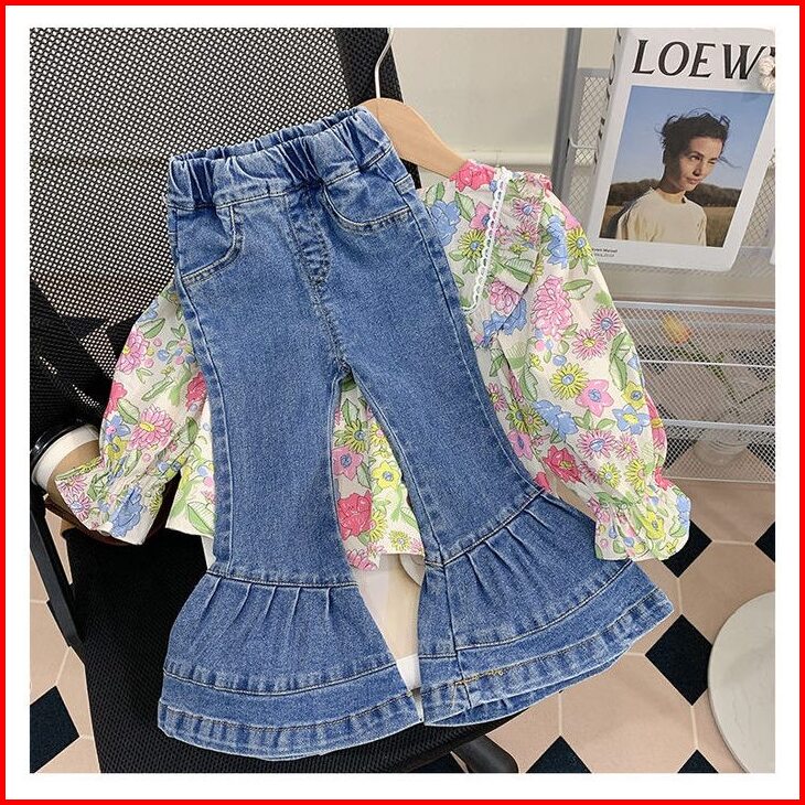 Rainbow Setelan Anak Perempuan Impor Korea Usia 1-4 Tahun Lengan Panjang Motif Bunga Jeans Setelan