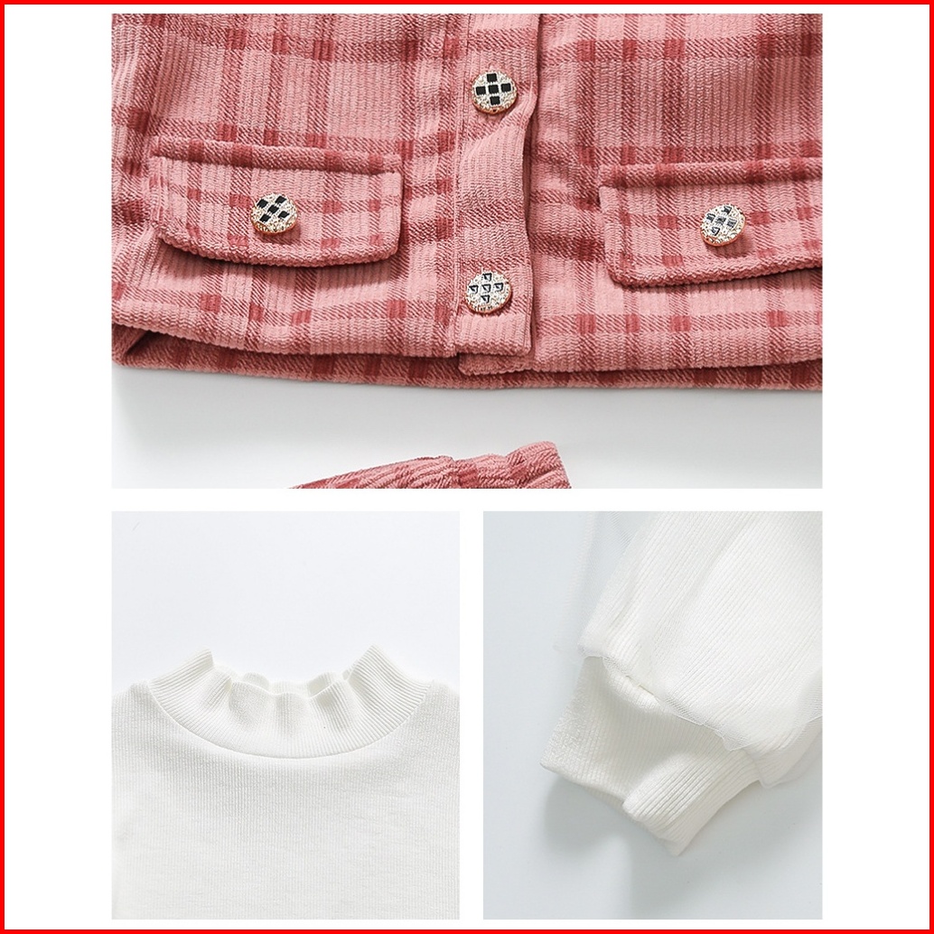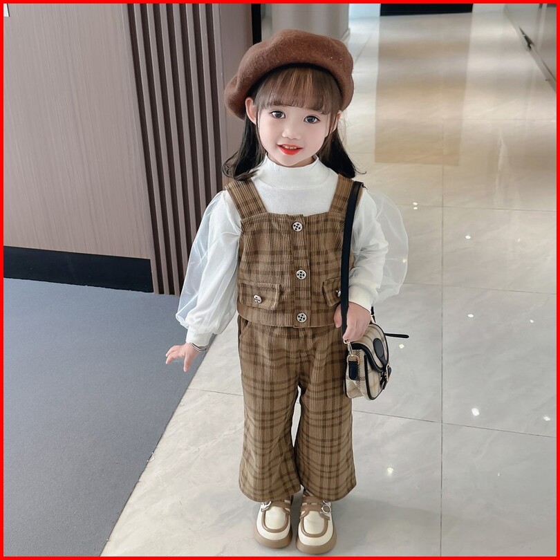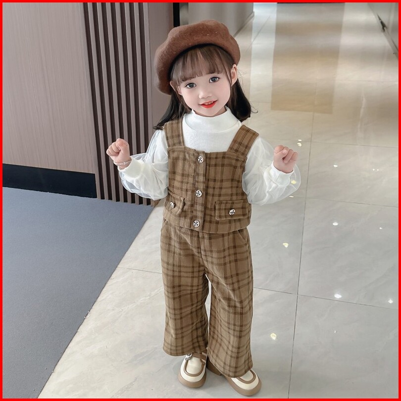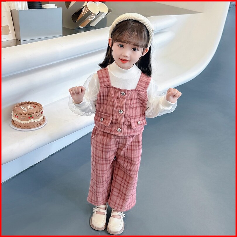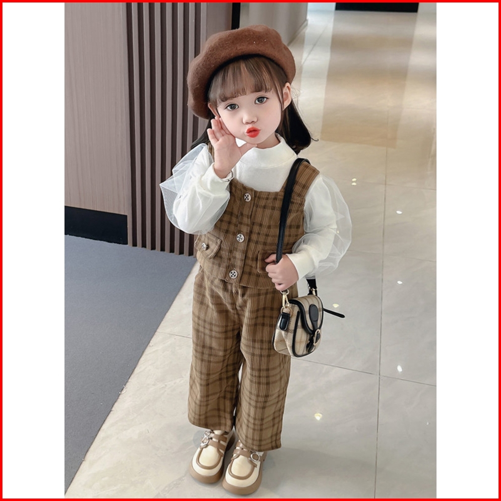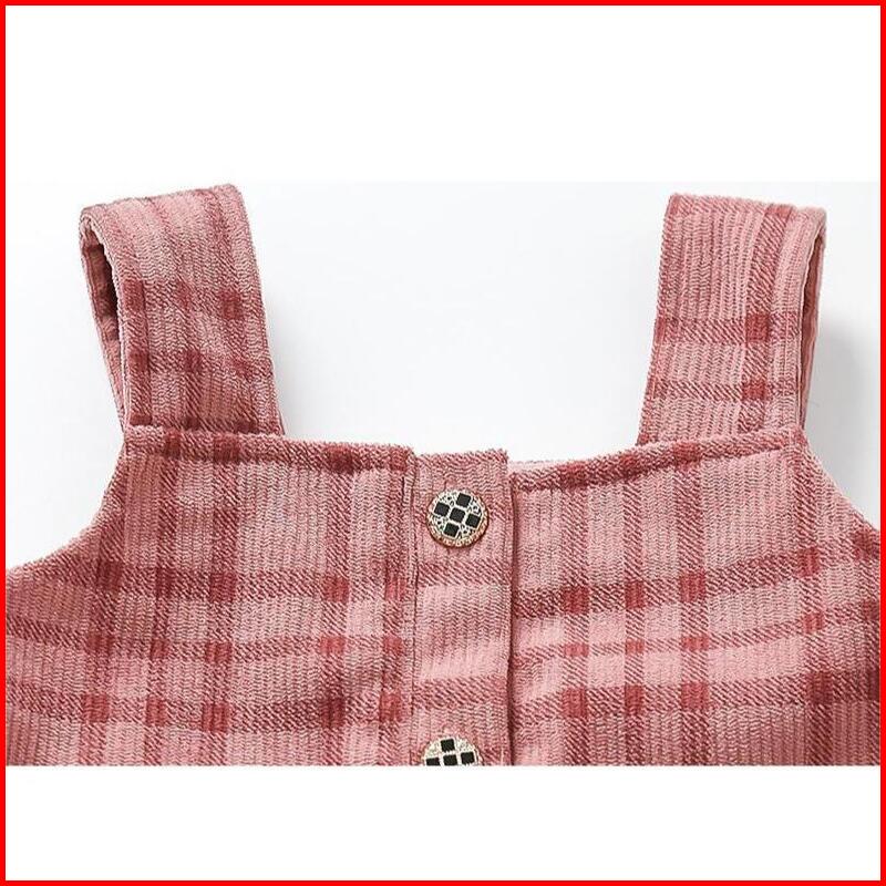 Twinkle Setelan 3 In 1 Anak Perempuan Lengan Panjang Katun Motif Kotak Korean Style Usia 1-4 Tahun