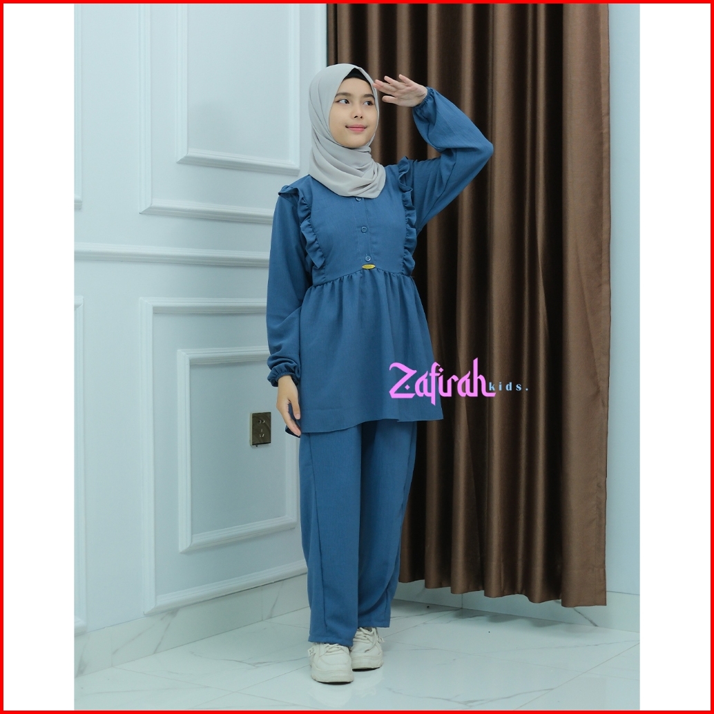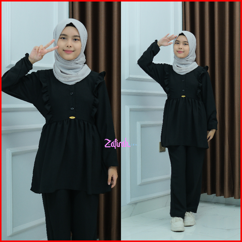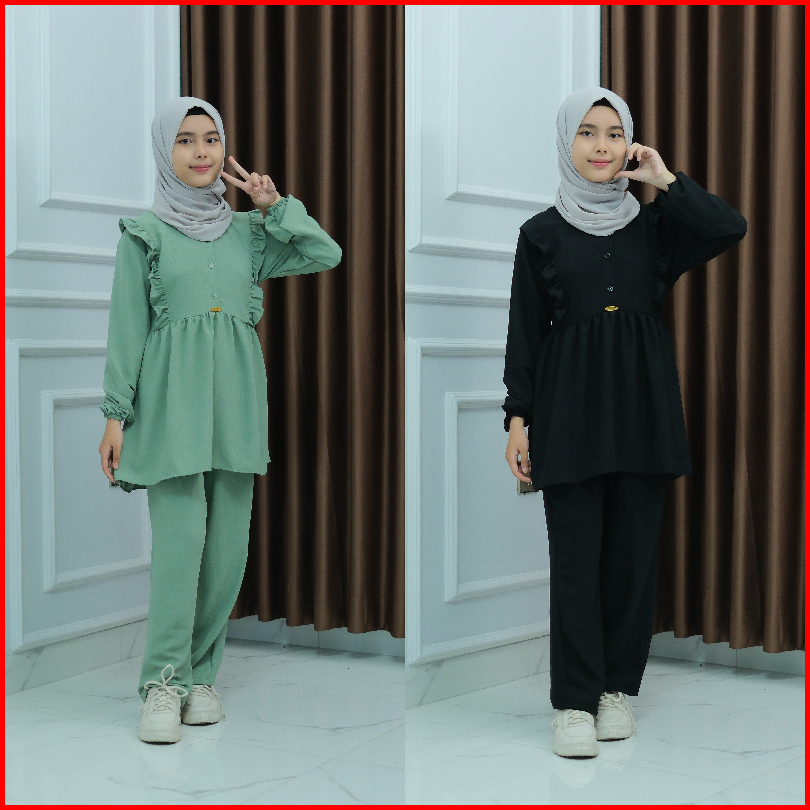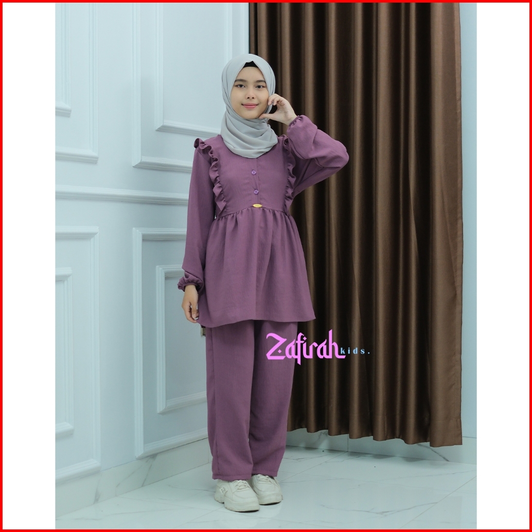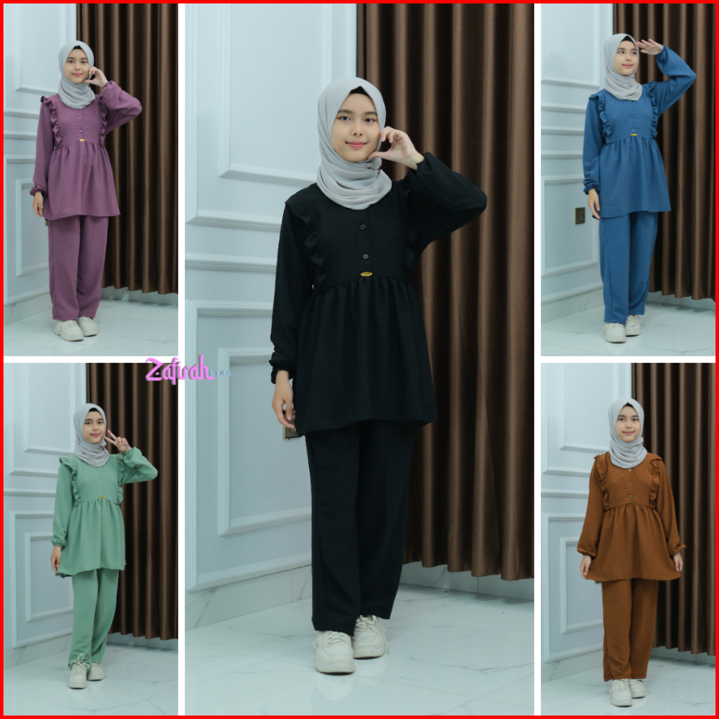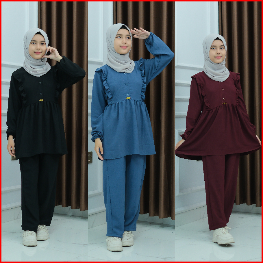 Baju Setelan Anak Perempuan Kayla One Set Muslimah Tanggung Terbaru Kekinian 6 Sampai 15 Tahun Bahan Crinkle Premium Nya