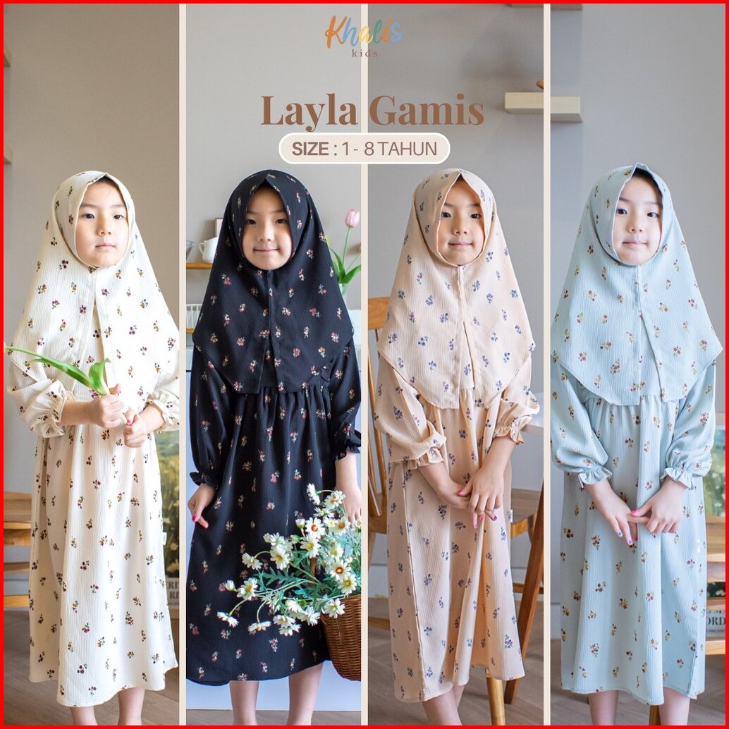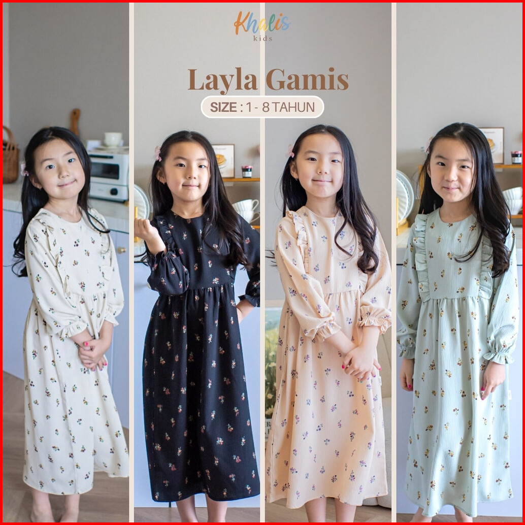 Khalis Kids Layla Dress Gamis Baju Dress Gamis Anak Perempuan 1-8 Tahun