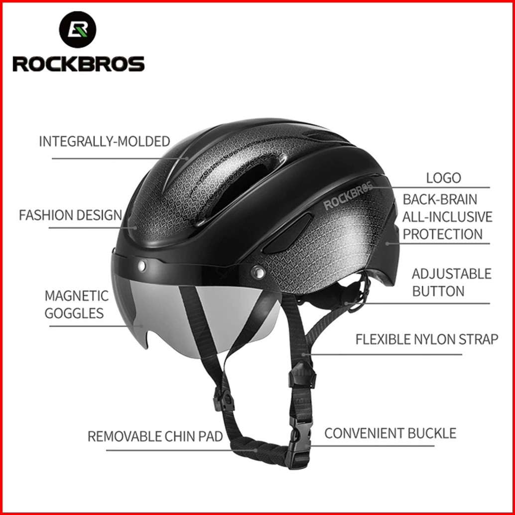 Rockbros Wt-018s Helm Sepeda Gowes Ultralight Helmet With Magnetic Glasses Helm Mtb Roadbike Seli