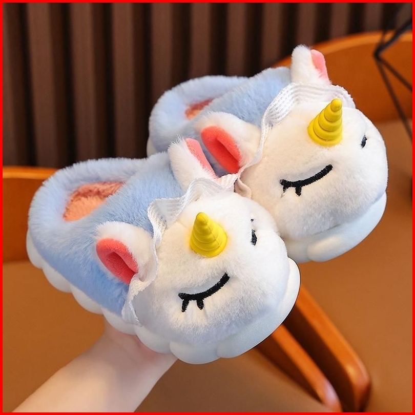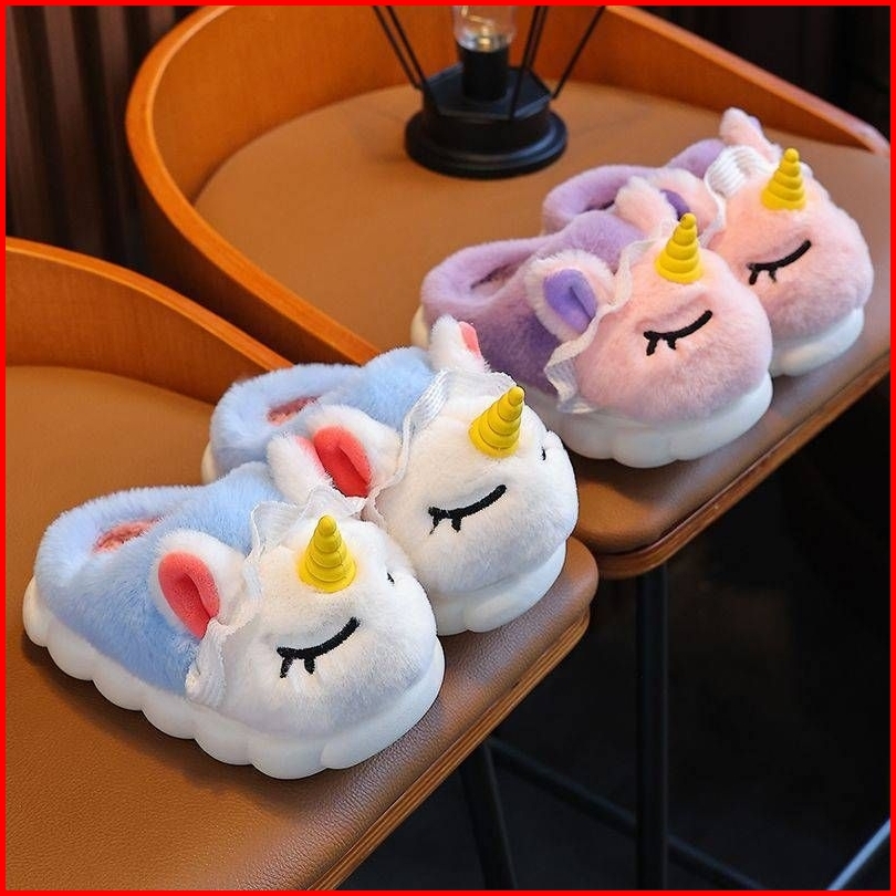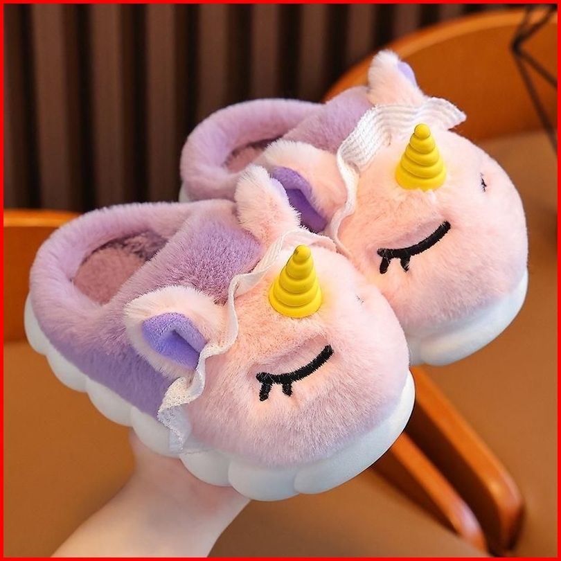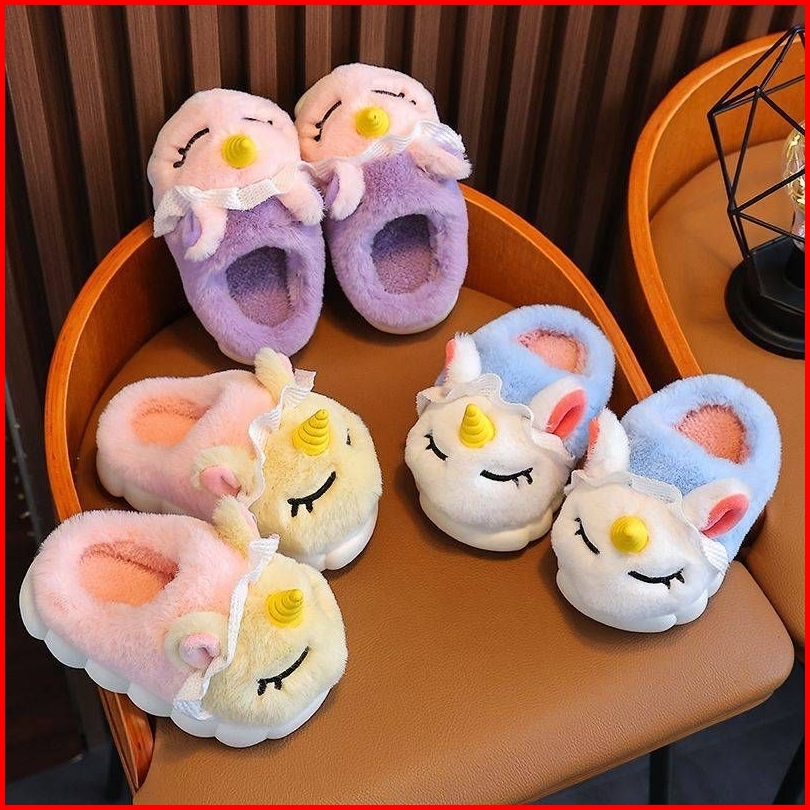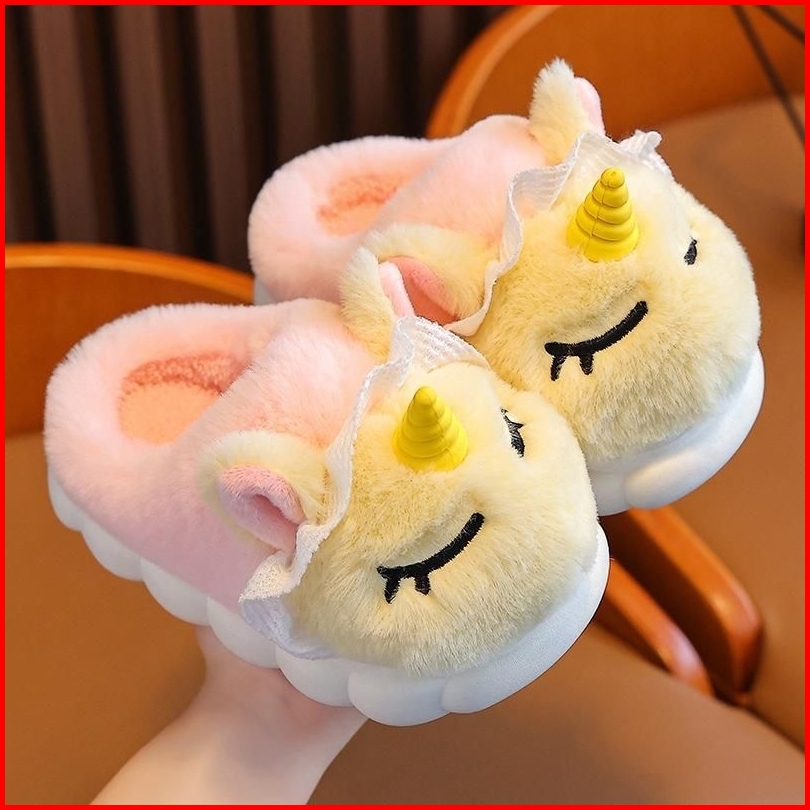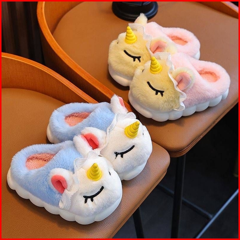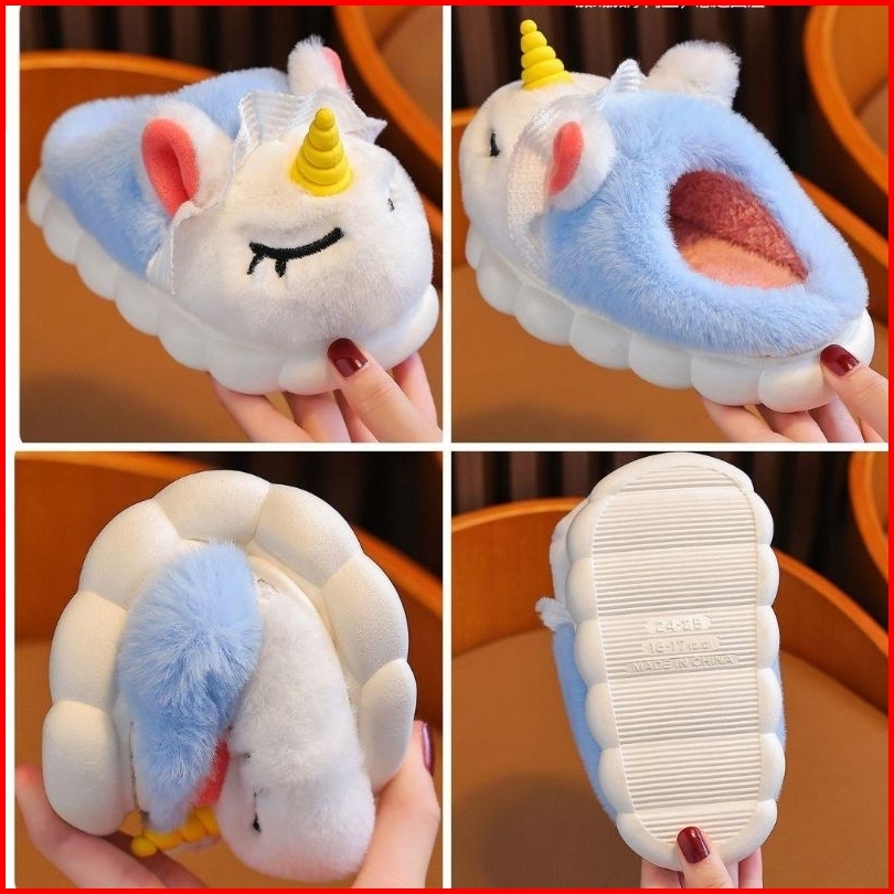 Sandal Anak Sendal Selop Karet Rumah Anak Bulu Lucu Boneka Unicorn Antislip Anti Licin Sandal Karet Boneka Anak