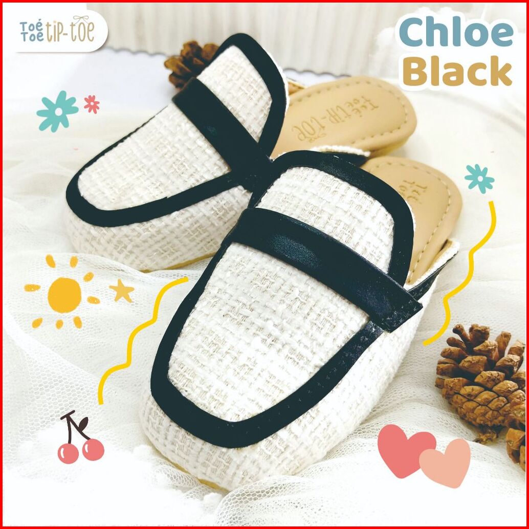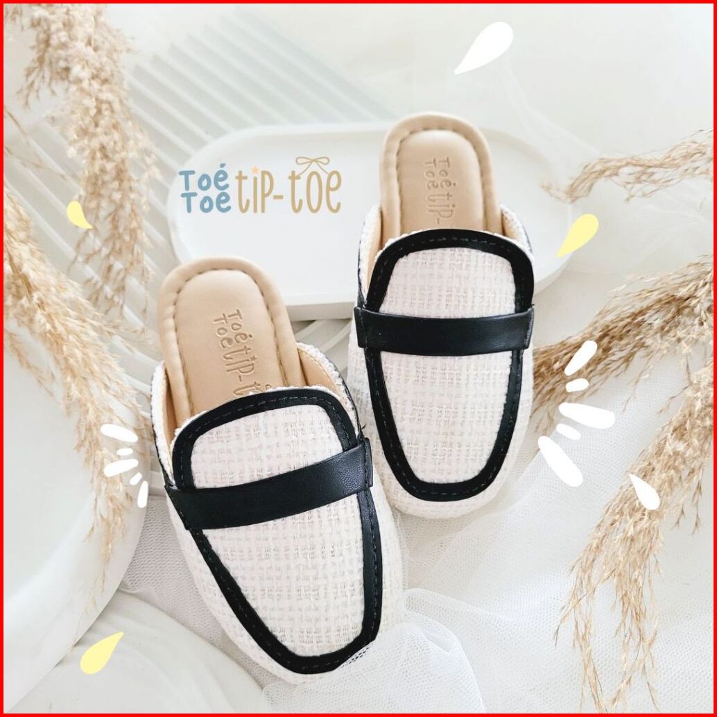 Toetoetiptoe - Chloe Kids Shoes Black Sepatu Sendal Sandal Mules Anak Putih Broken White Tweed List Garis Hitam