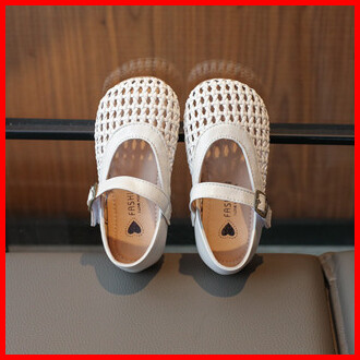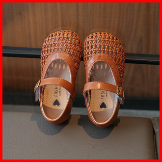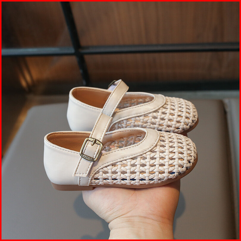 Sandal Anti Tabrakan Sederhana Bergaya Untuk Bayi Perempuan Sepatu Anak Sol Lembut Kait Lingkaran Berongga Tenun Ukuran