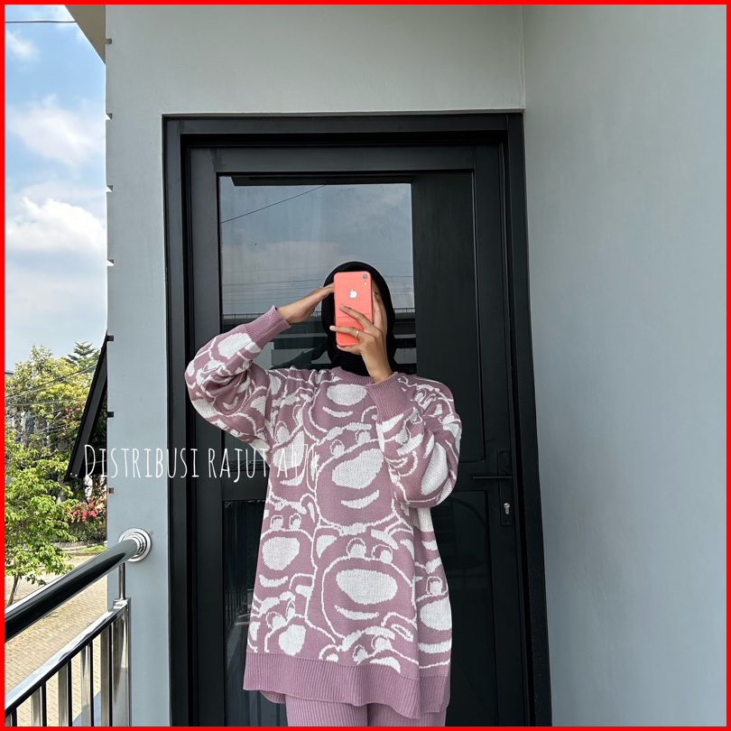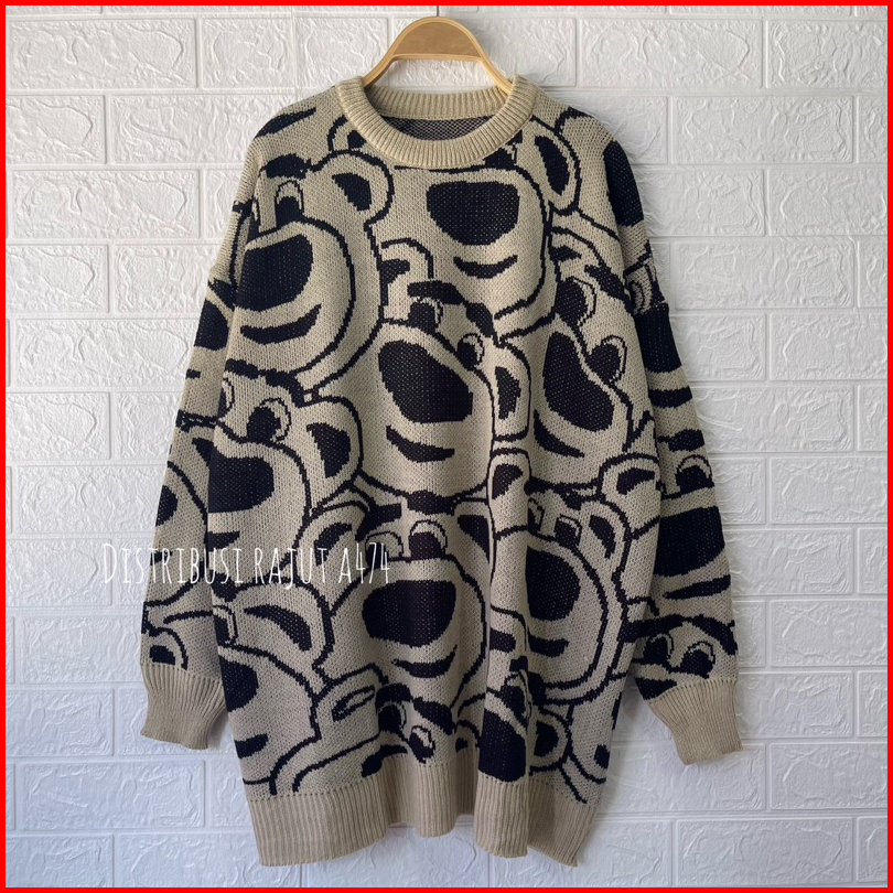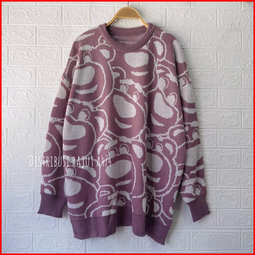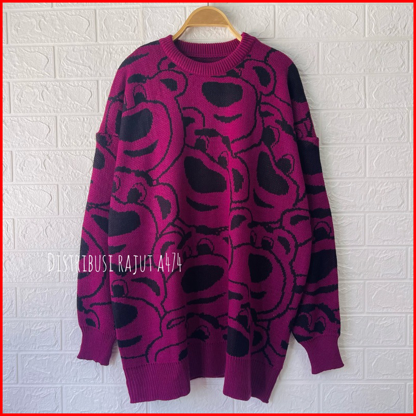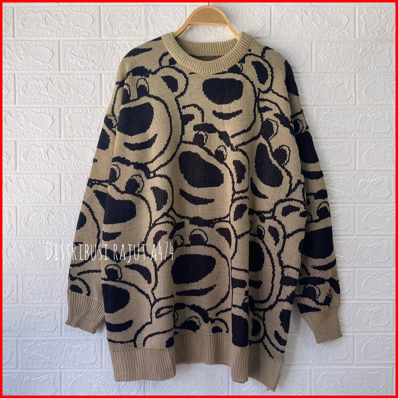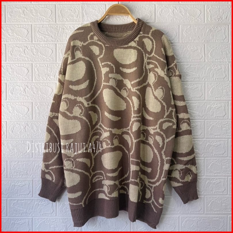 Mickey Sweter Rajut Oversize Motif Bernad Blouse Rajut Lengan Panjang Wanita