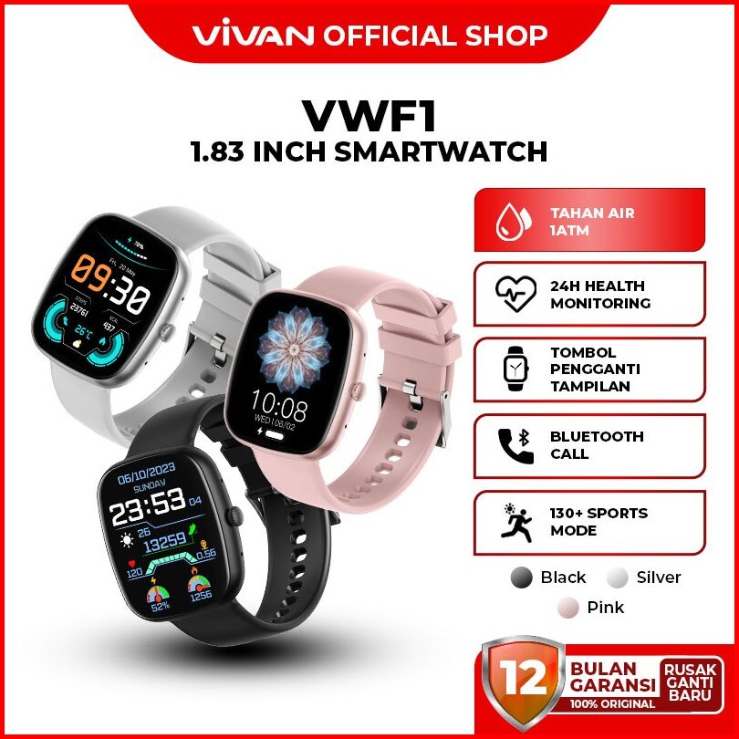 Vivan Smart Watch Tft 1.83 130 Sports Mode 1 Atm Battery Up To 7 Days Vwf1 Garansi 12 Bulan