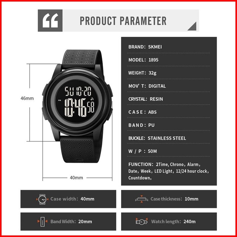 Skmei 1895 Jam Tangan Pria Wanita Digital Chronograph Sport Watch Anti Air Tali Rubber Mgos