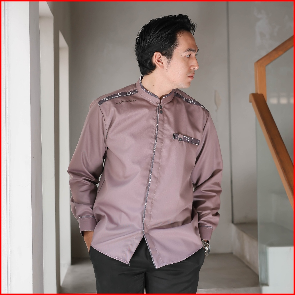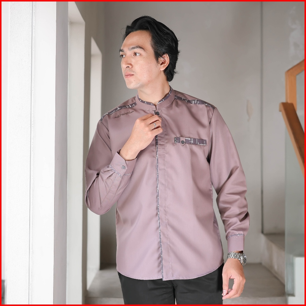 Baju Koko Pria Elrumi Lengan Panjang Motif Yisunsin Warna Lilac