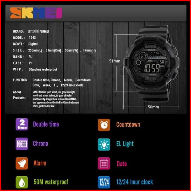Jam Skmei 1243 Original Water Resist Bergaransi Free Paper Box