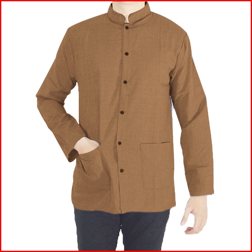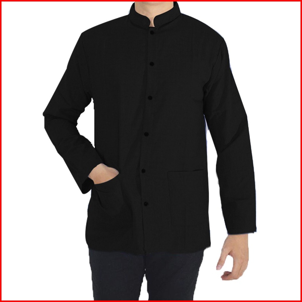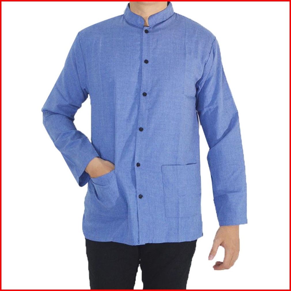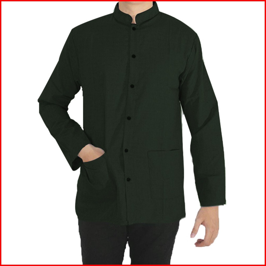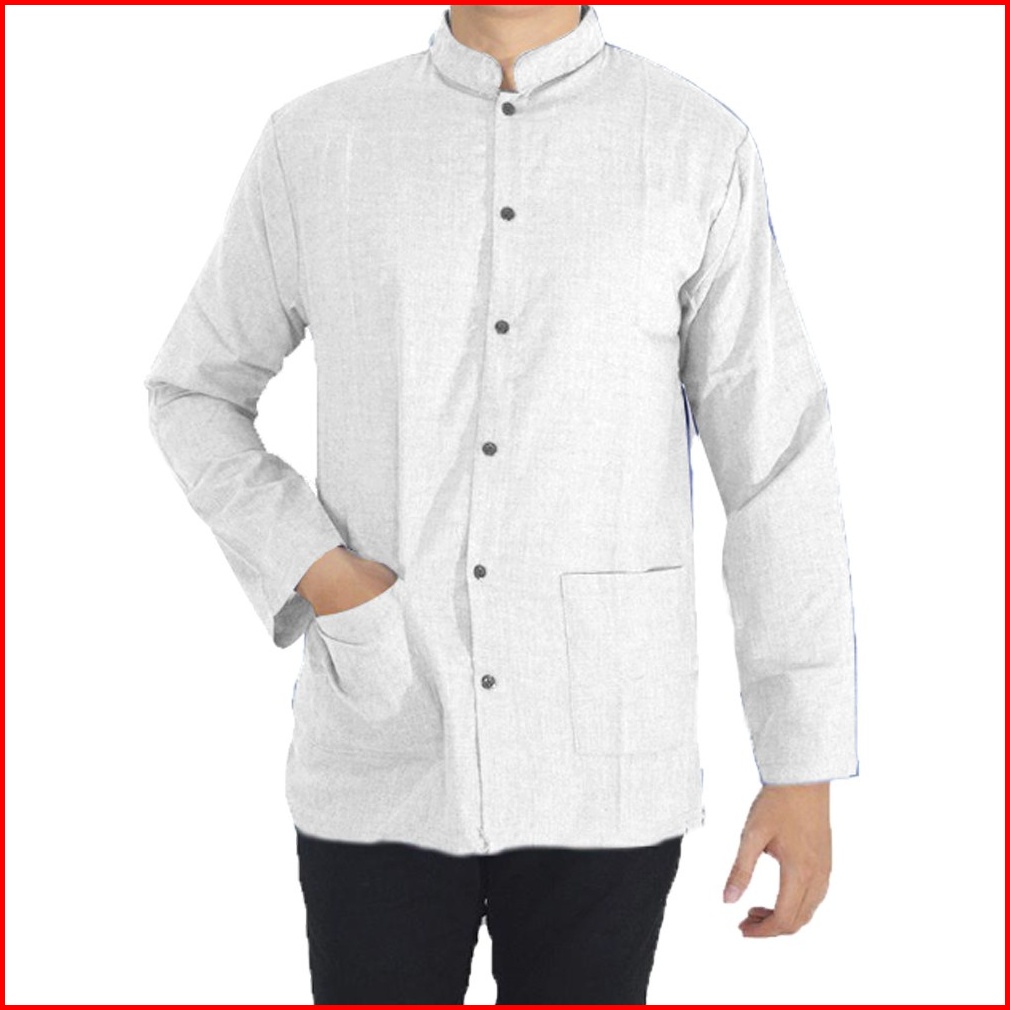 Fortklass Salman Kemeja Koko Pria Lengan Panjang Slimfit Cowok Baju Koko Sablon Motif Kemeja Tangan Panjang Lebaran Koko