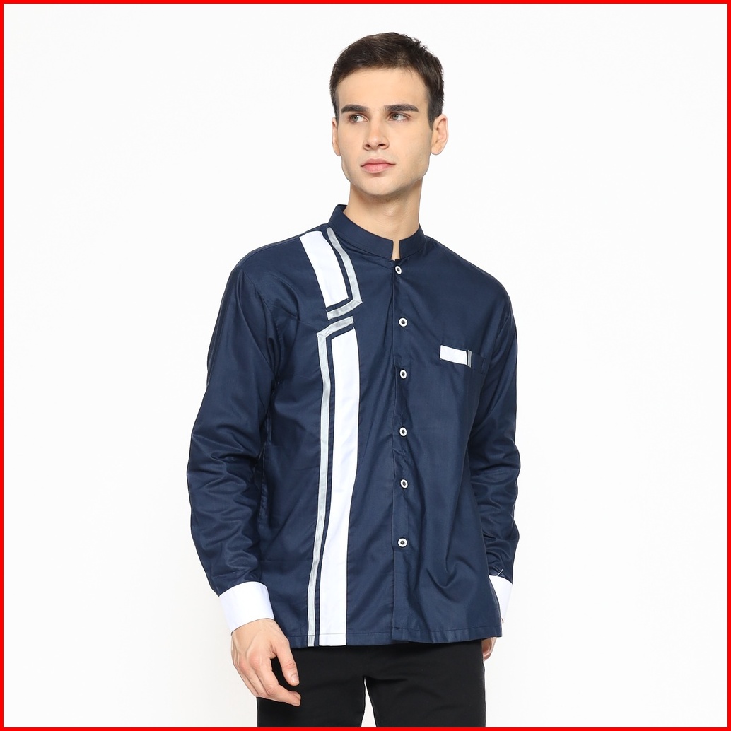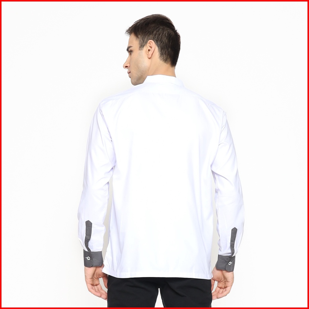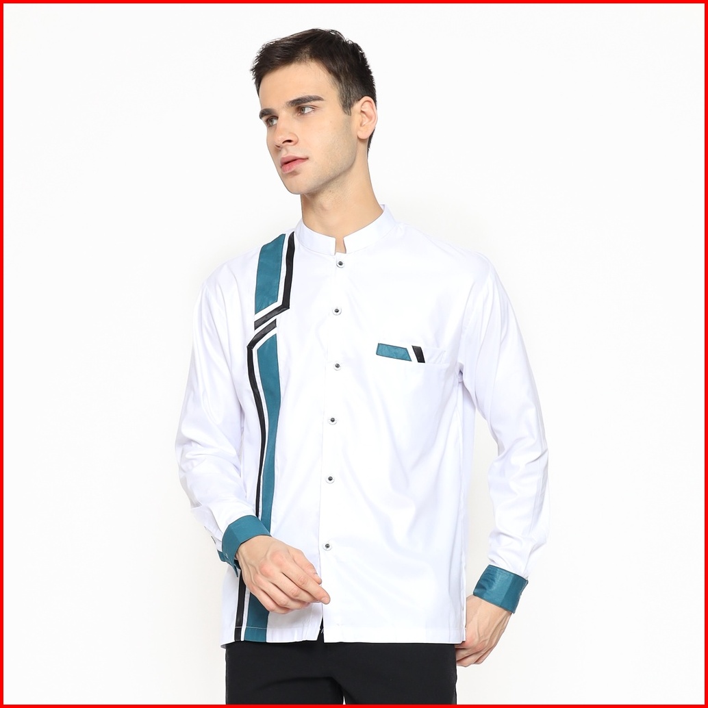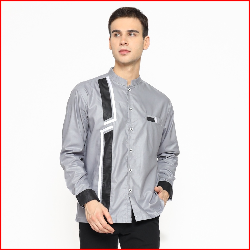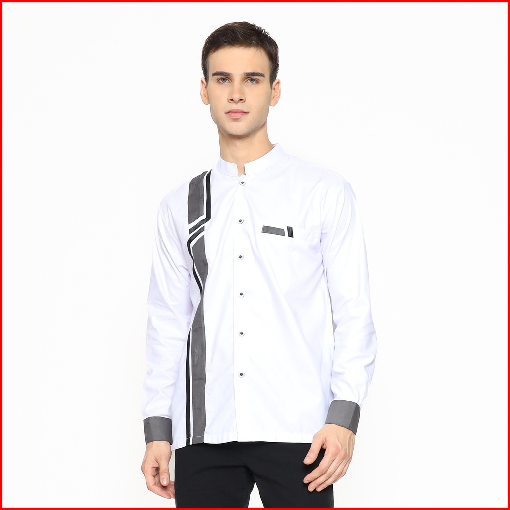 Asakhi - Baju Koko Pria Muslim Lengan Panjang Koko Hadroh Azzahir Motif Petir Warna Putih Kombinasi Abu M L Xl