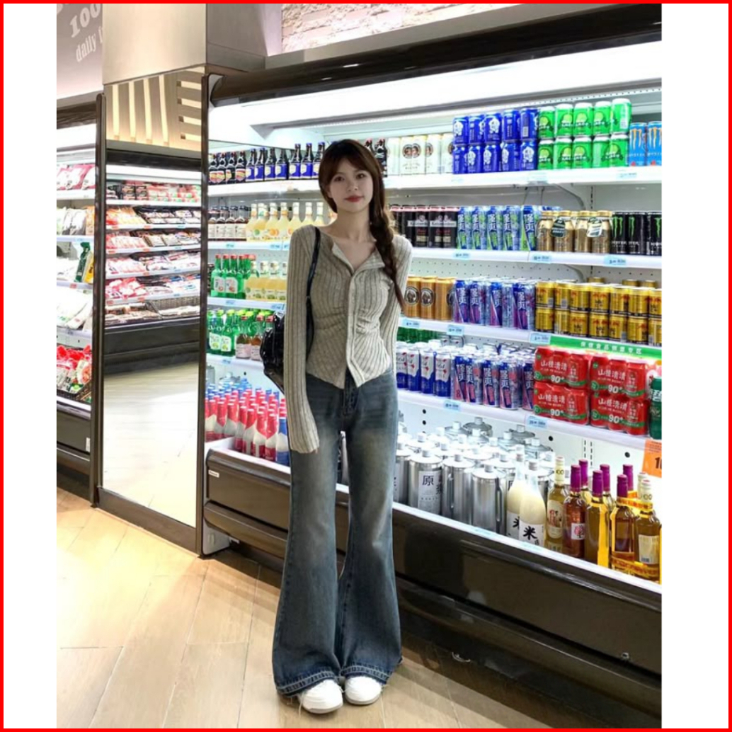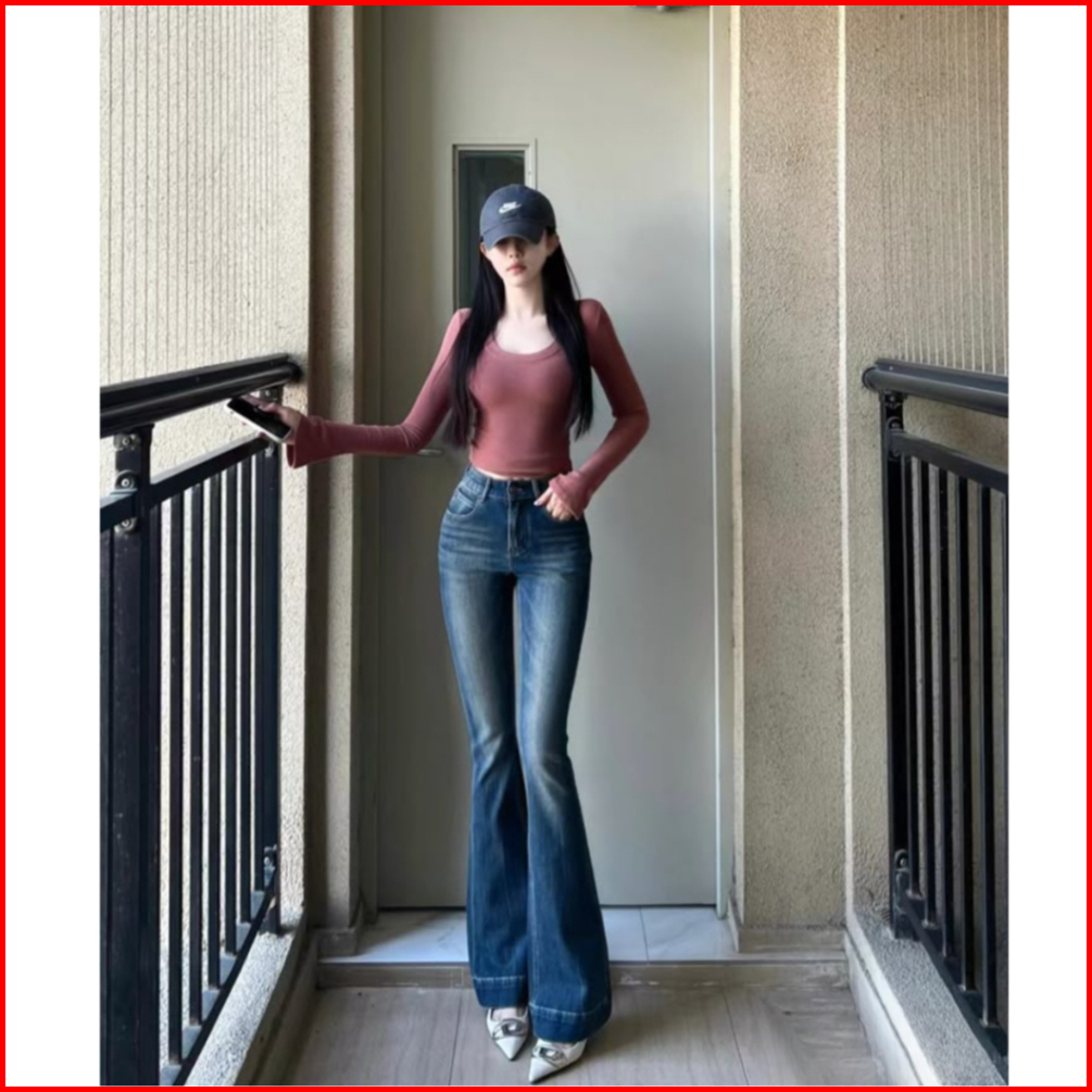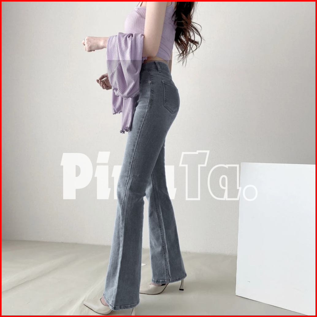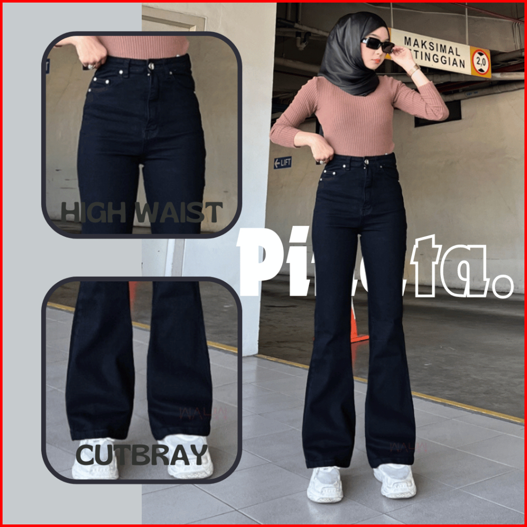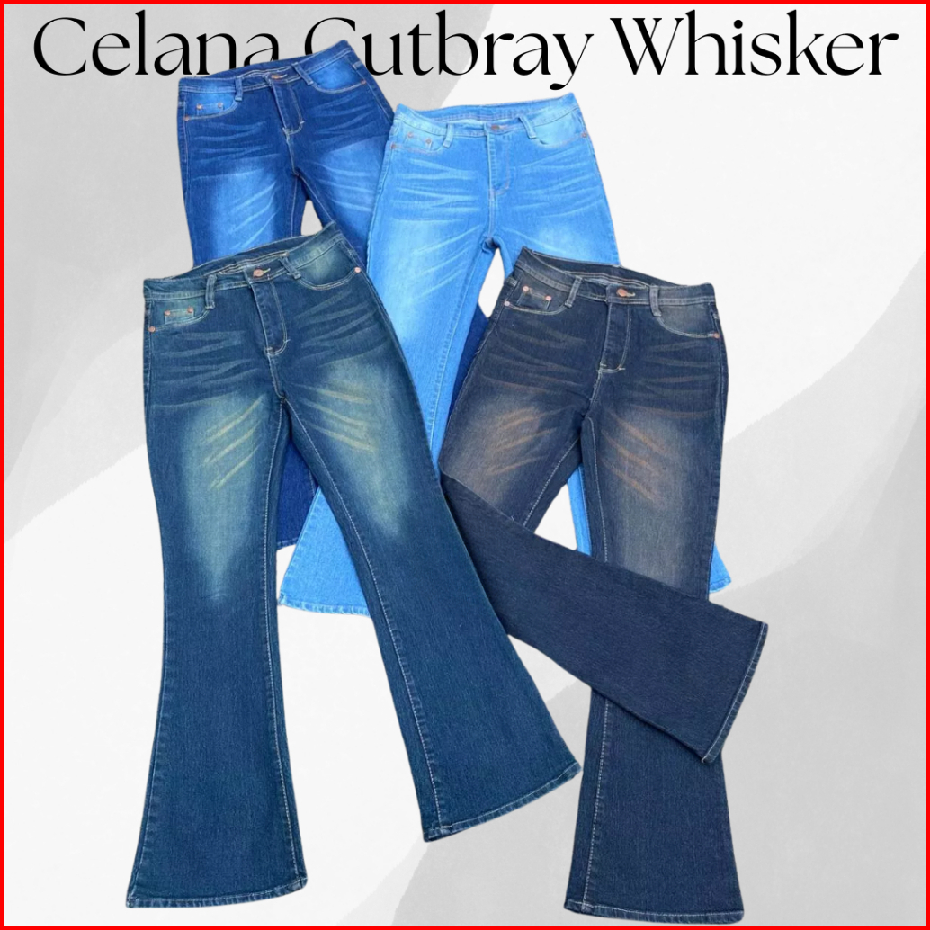 Celana Cutbray Whisker Jeans Wanita Highwaist Flare Pants Denim Stretch Loose 27-34 Original Premium