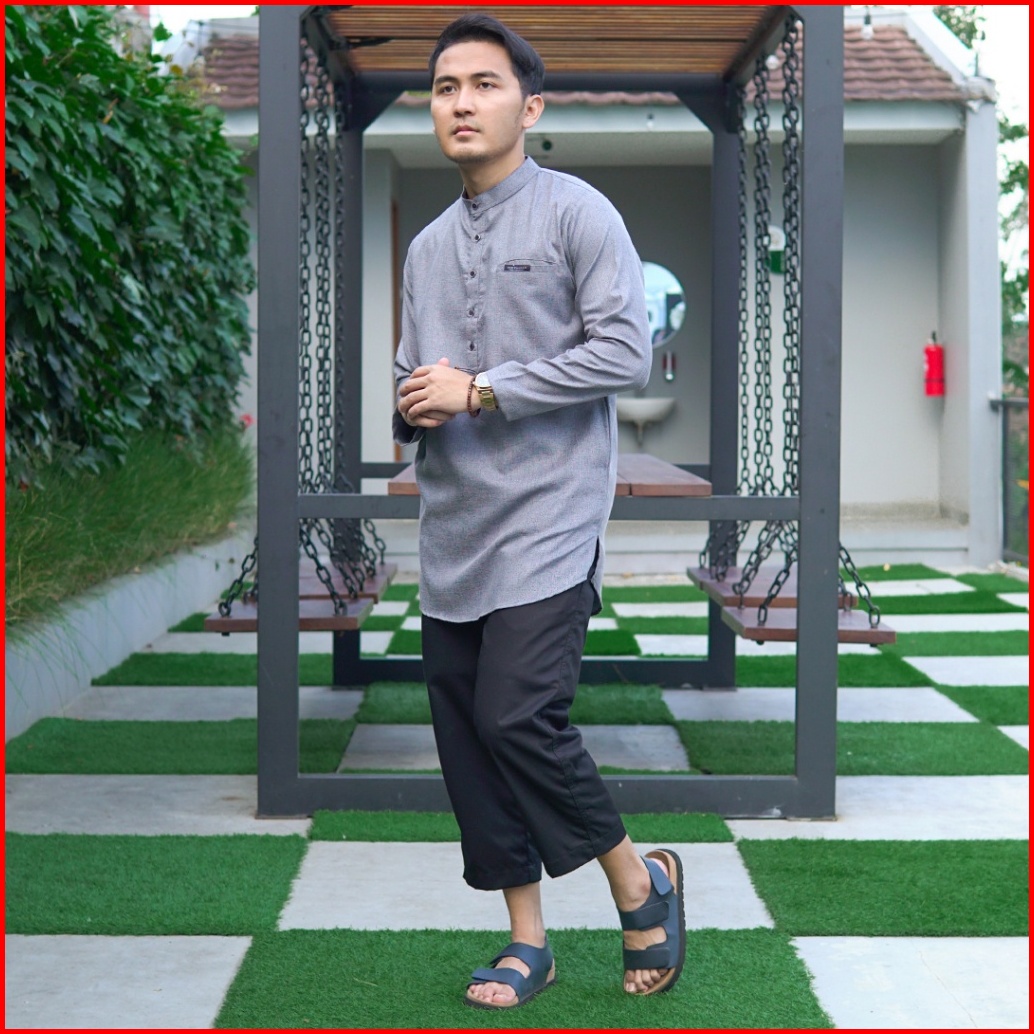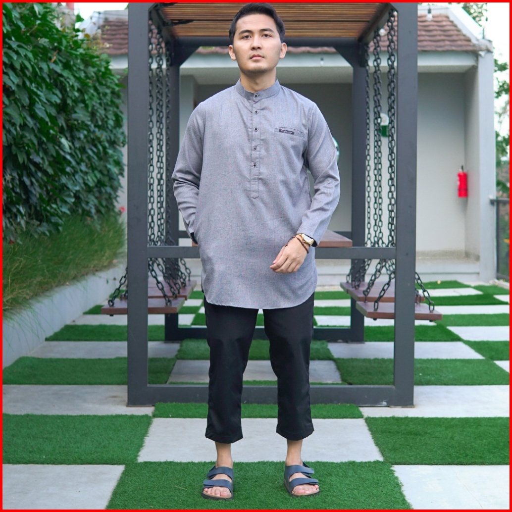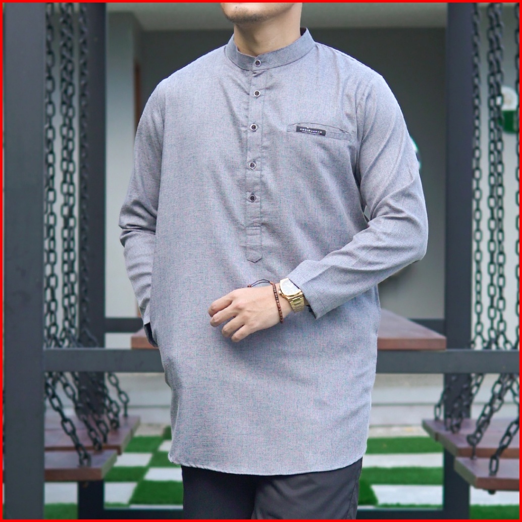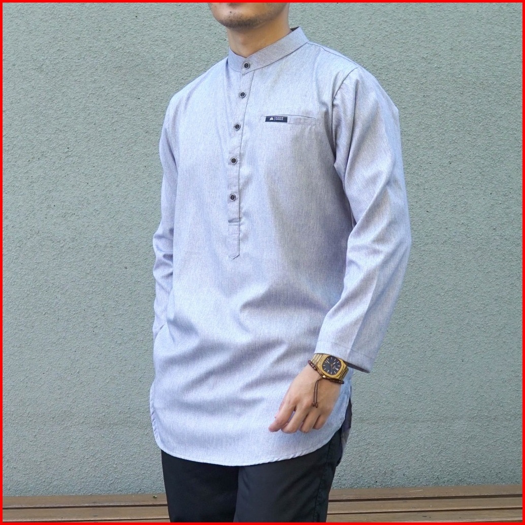 Khoirummah Koko Kurta Makkah - Baju Muslim Pria Dewasa Polos Lengan Panjang - Light Grey