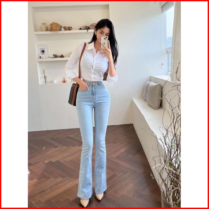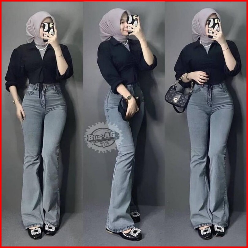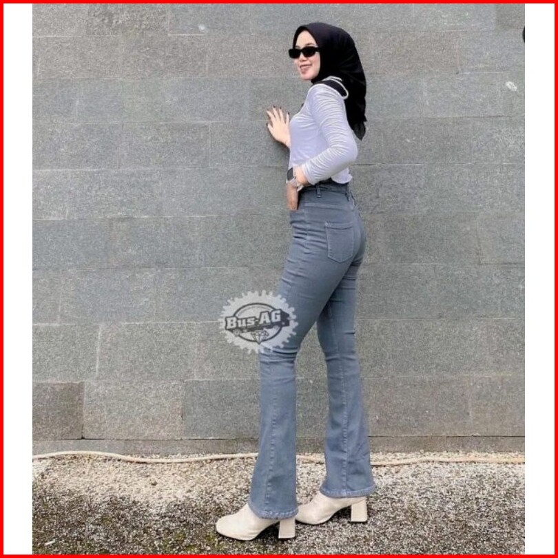 Celana Jeans Cutbray Abu Grey Wanita Highwaist Terbaru 2024 Bahan Melar