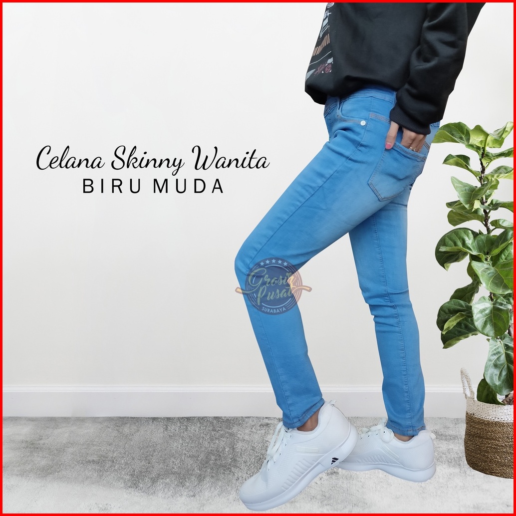 Celana Panjang Jeans Pensil Skinny Wanita Ukuran 27 - 34
