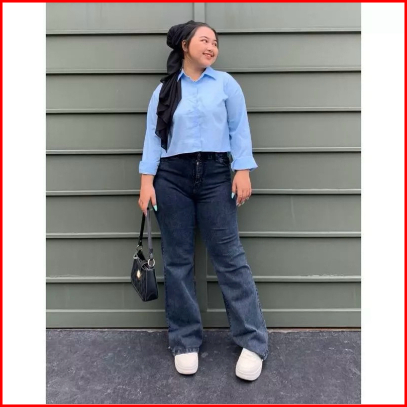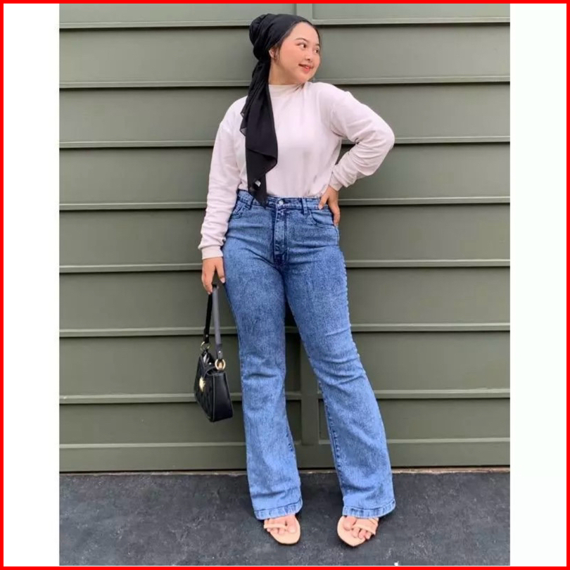 Fatheena Fashion - Celana Cutbray Jumbo Jeans Premium High Waist Jumbo Cutbray Streach Cutbray Jeans Wanita Jumbo Cutbra