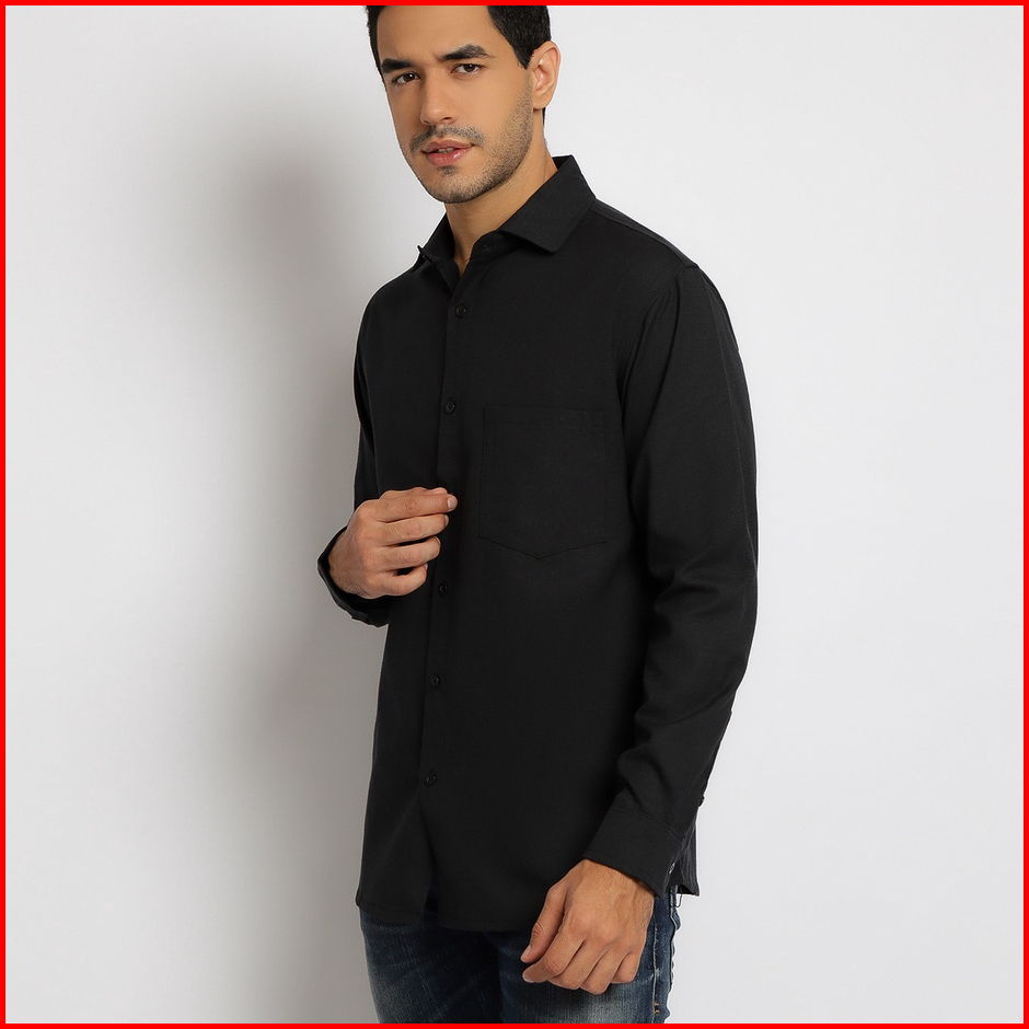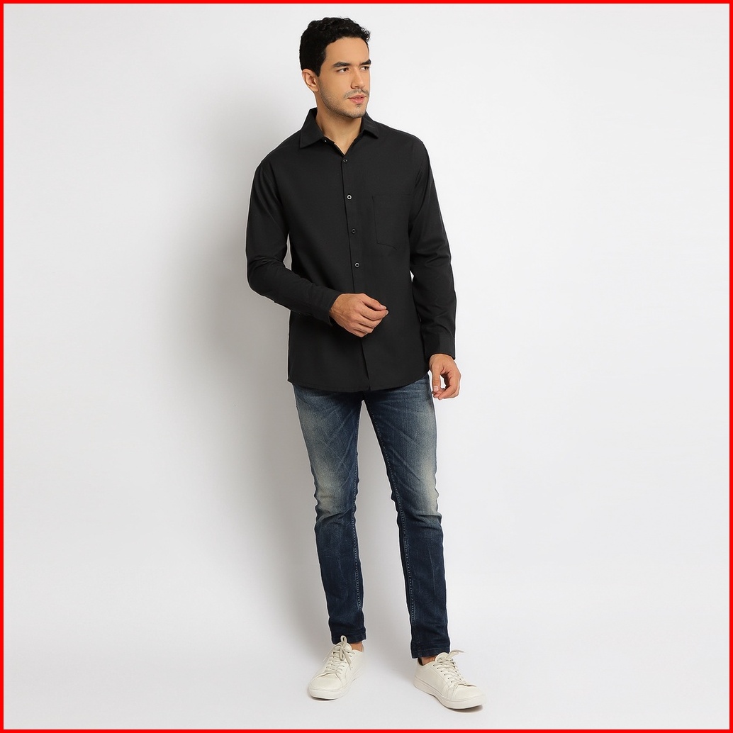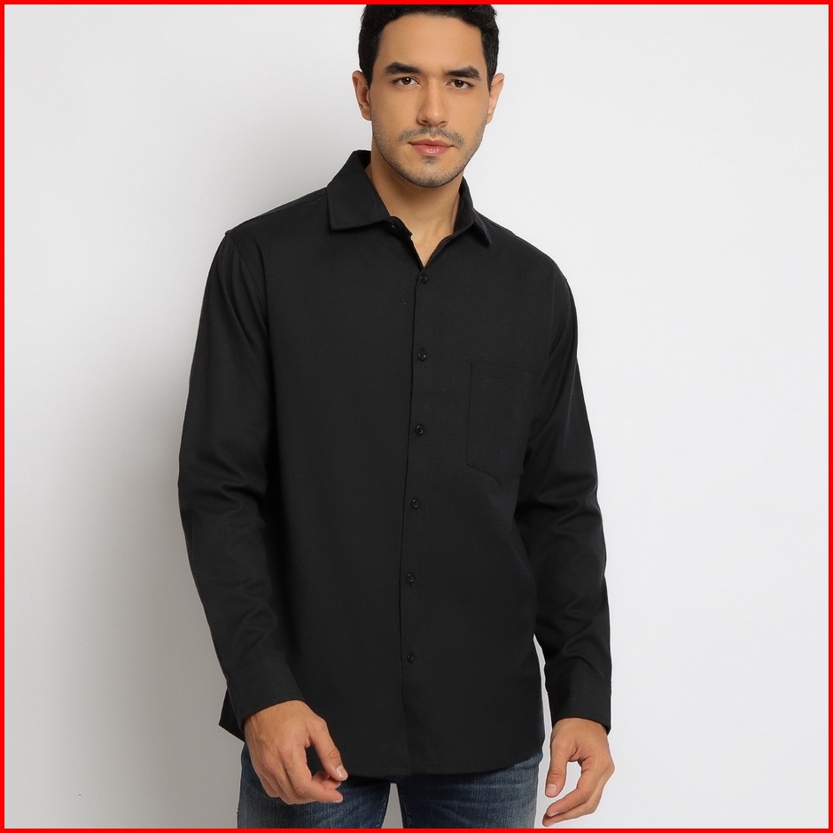 Paulmay Kemeja Formal Pria Lengan Panjang Hitam - Reguler Fit