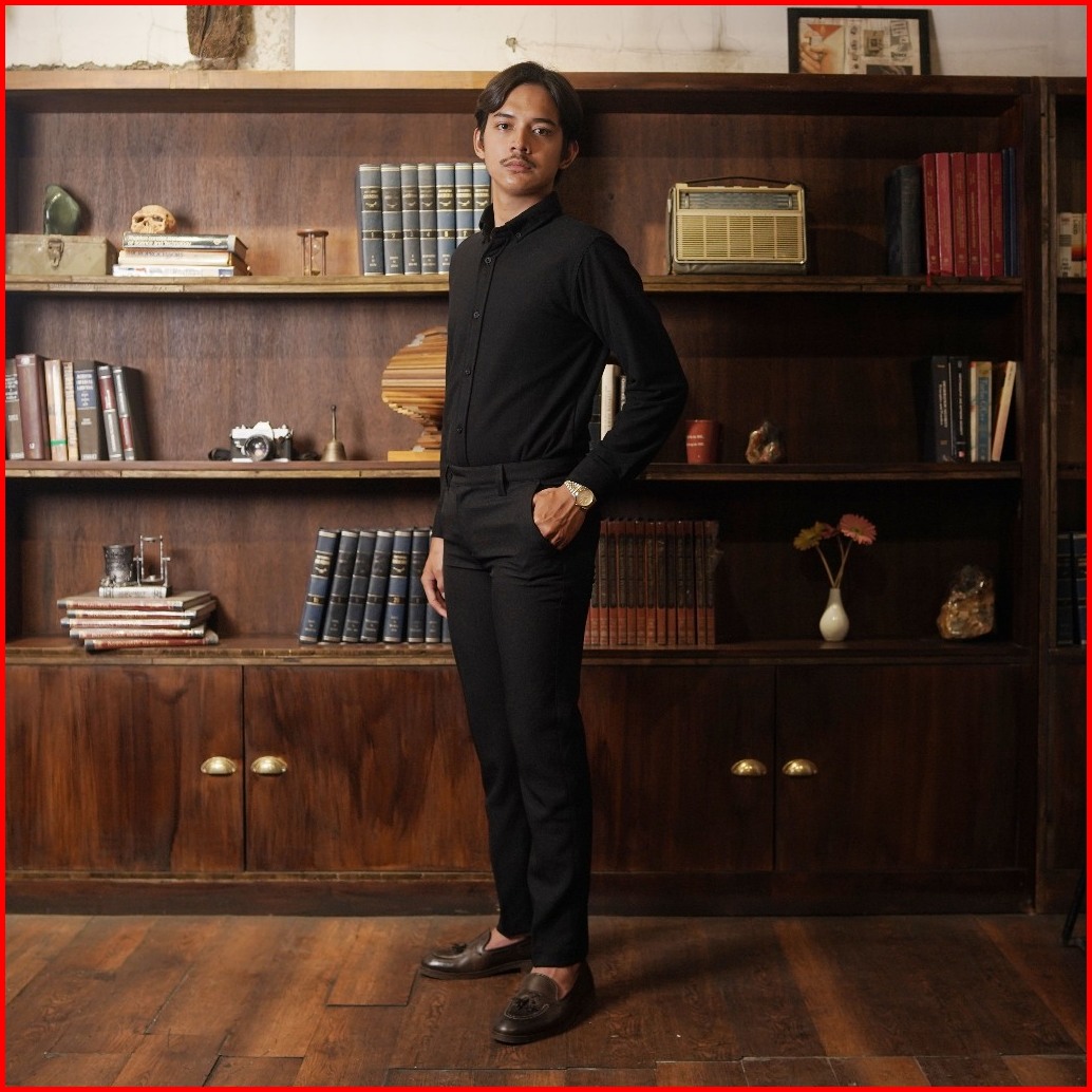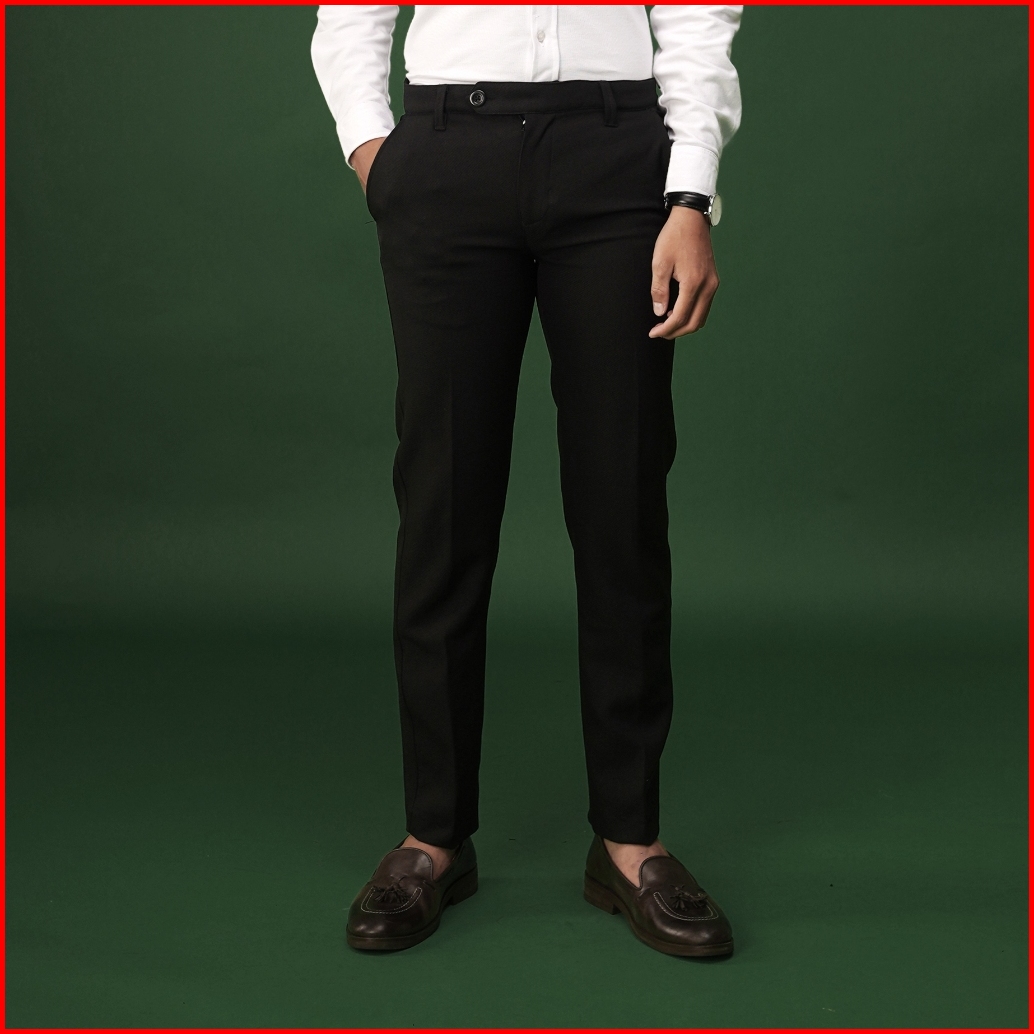 Gutermann - Celana Bahan Formal Pria Slim Fit Stretch Pants Black Trouser