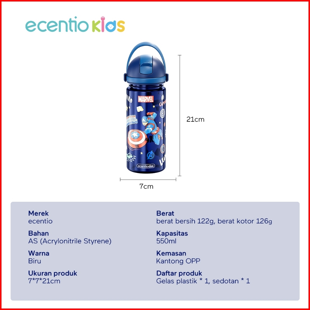 Ecentiokids 550ml Botol Anak Bpa Free Dengan Sedotan Tahan Panas Hingga 90 Seri Disney