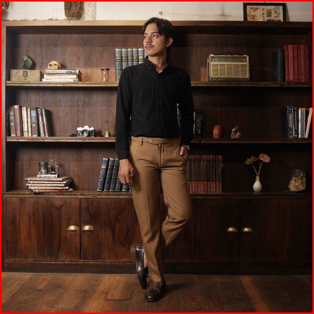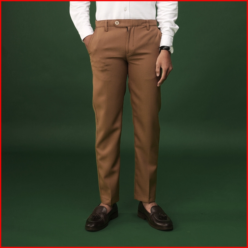 Gutermann - Celana Bahan Formal Pria Slim Fit Stretch Pants Mocca Trouser
