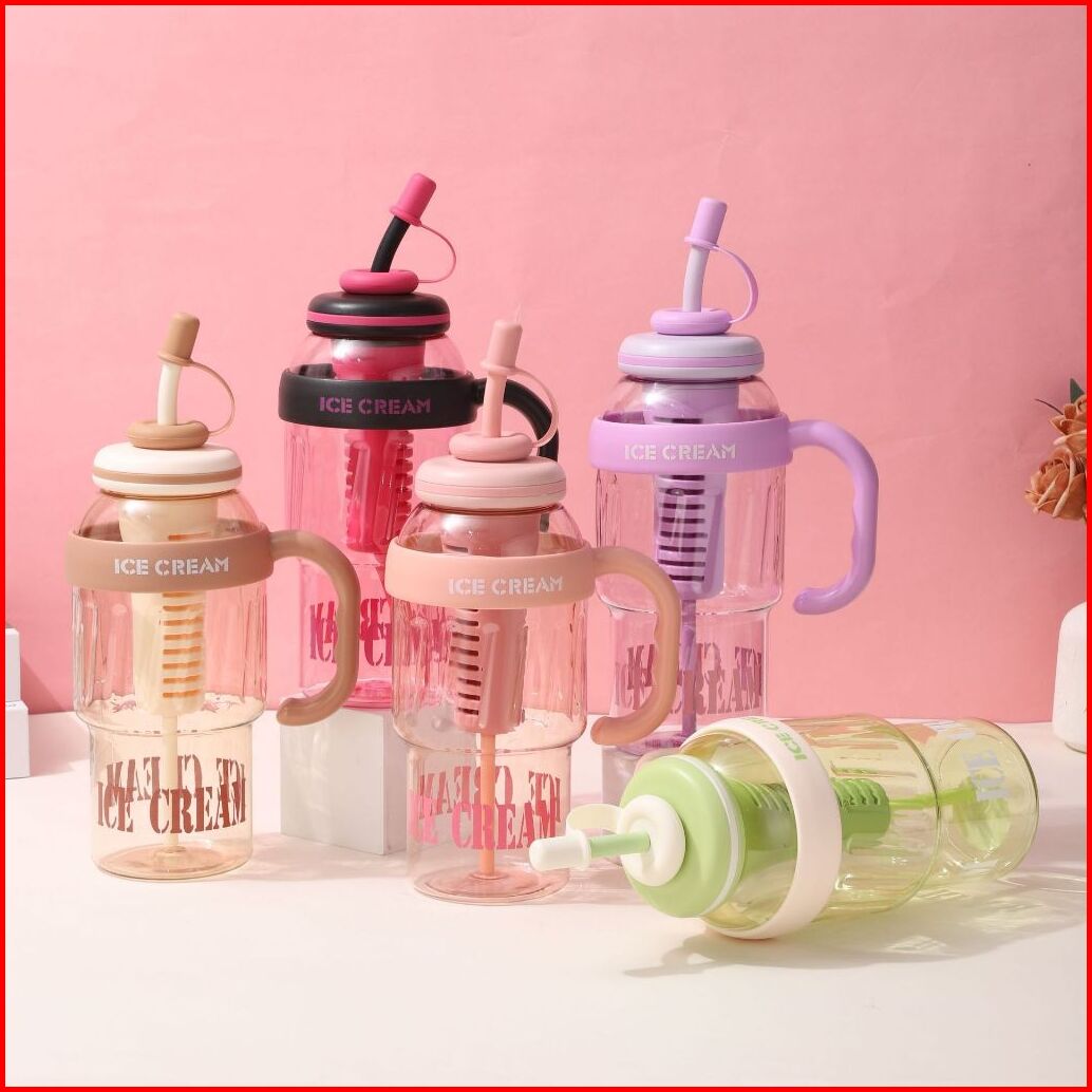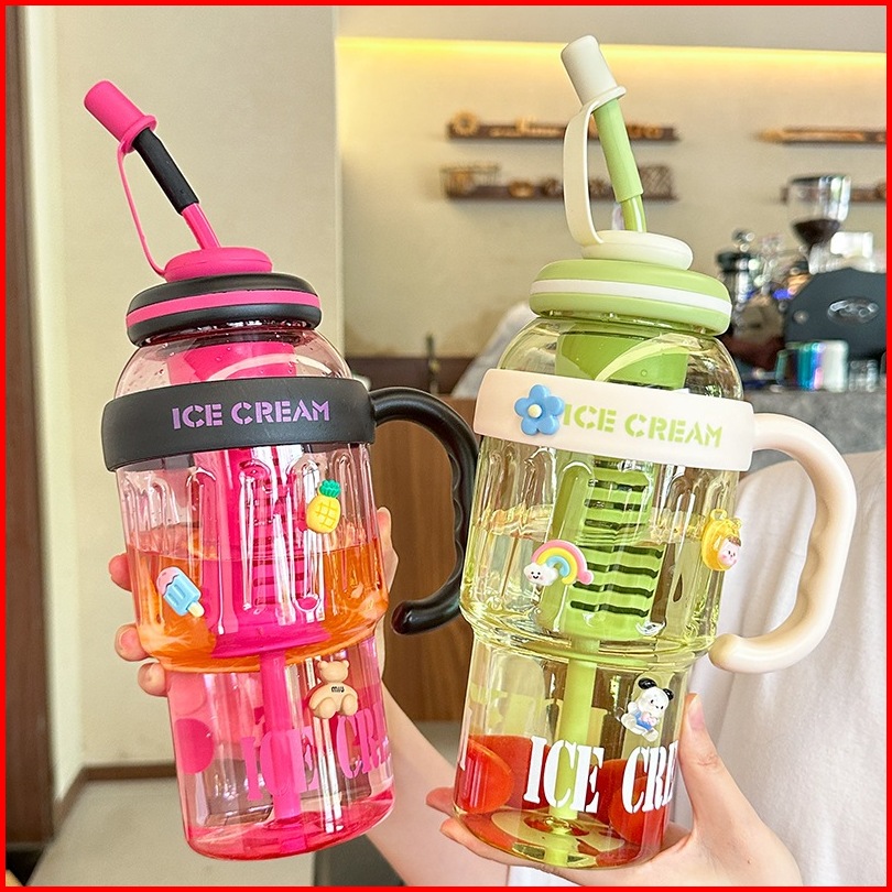 Botol Minum Lucu Jumbo 1400 Ml Sedotan Tumbler Gym Plastik Gagang Hx 3089