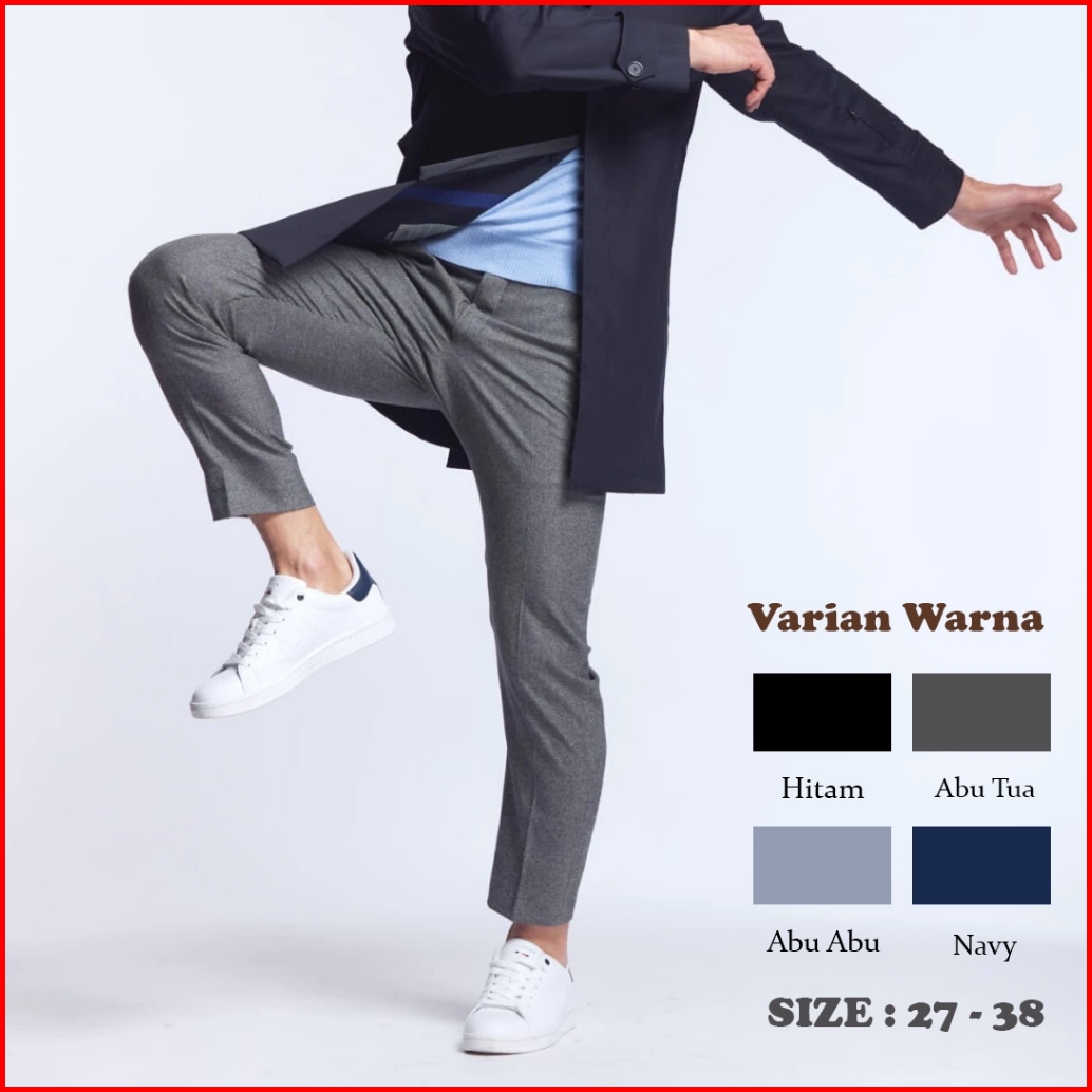 Celana Kerja Formal Pria Kantor Panjang Model Slim Fit Bahan Wol