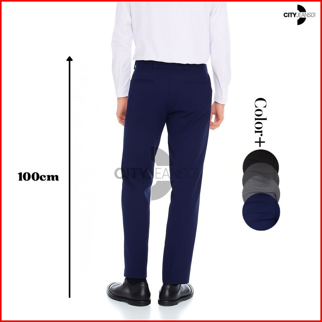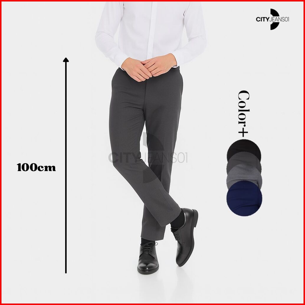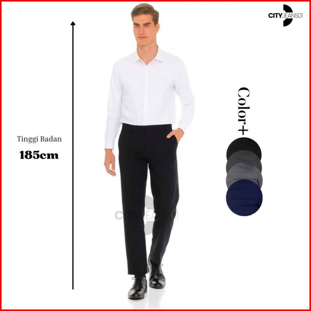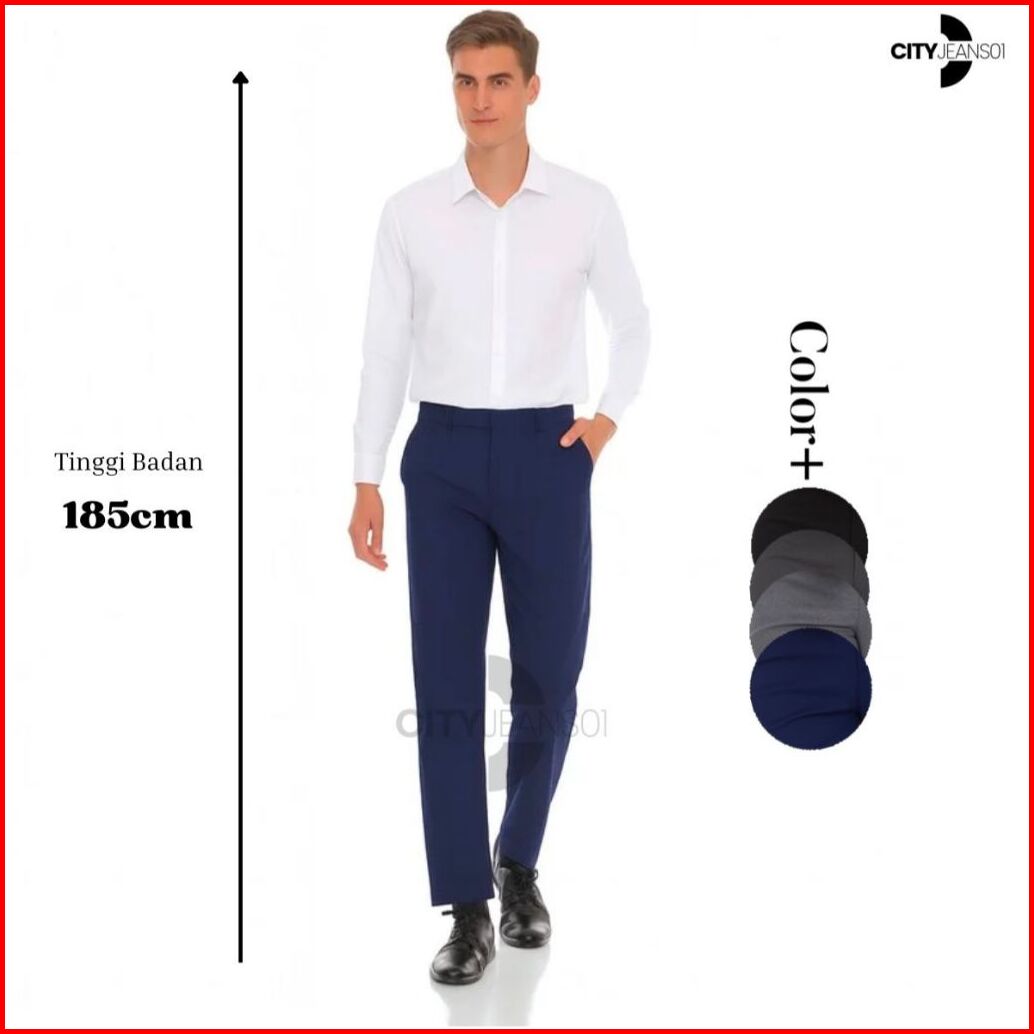 Celana Panjang-celana Bahan Kerja Formal Kantor Panjang Hitam Dasar Pria Slimfit
