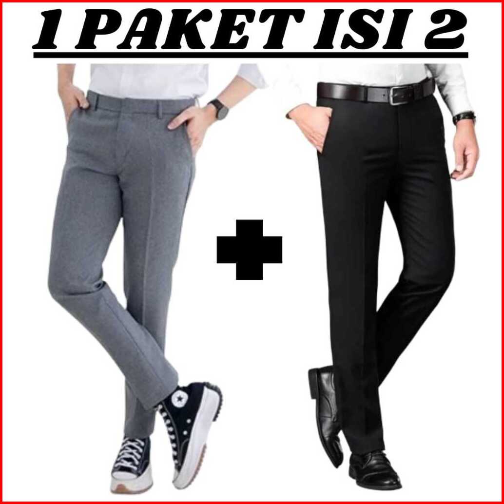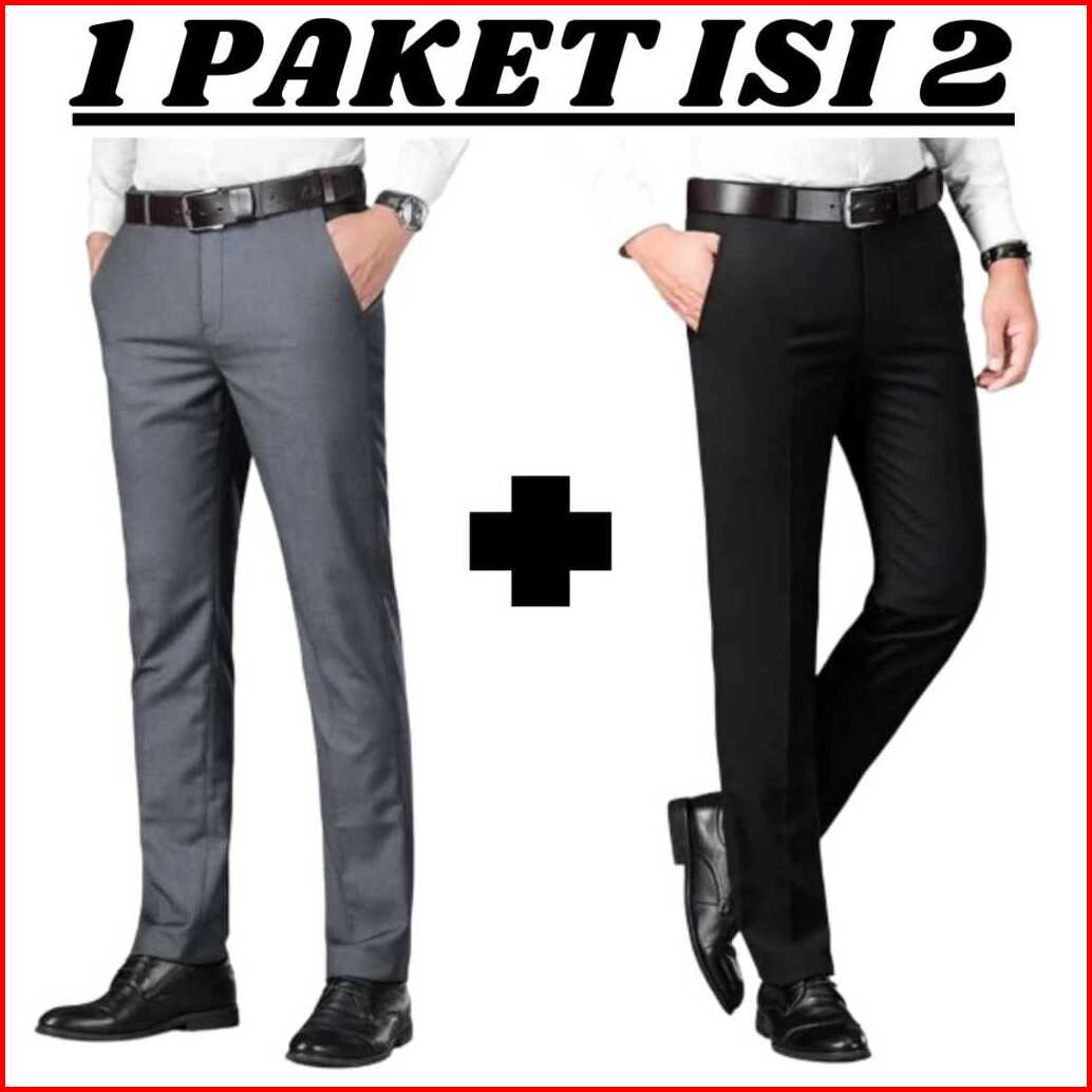 Promo 1 Paket Isi 2 Pcs Celana Formal Pria Slimfit Bahan Dasar Kain Woll Black Panjang Hitam