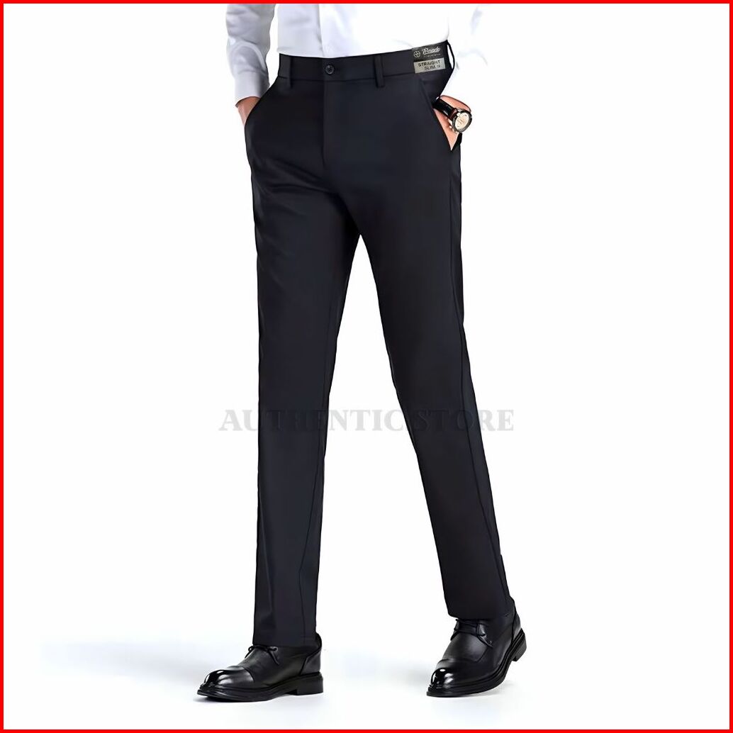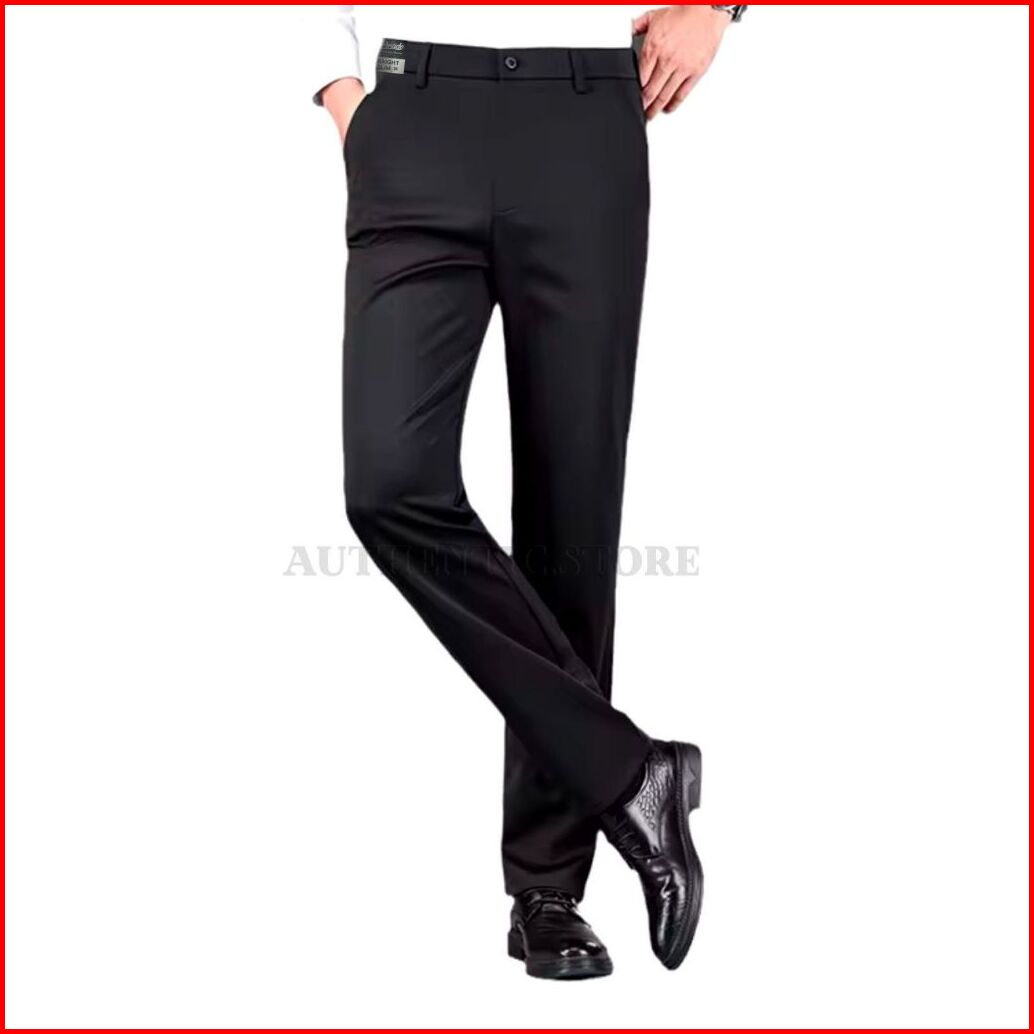 Celana Bahan Kerja Formal Kantor Panjang Hitam Dasar Pria Slimfit -02