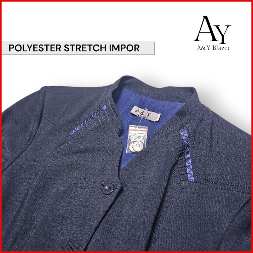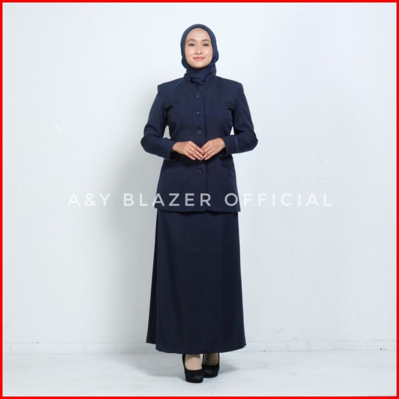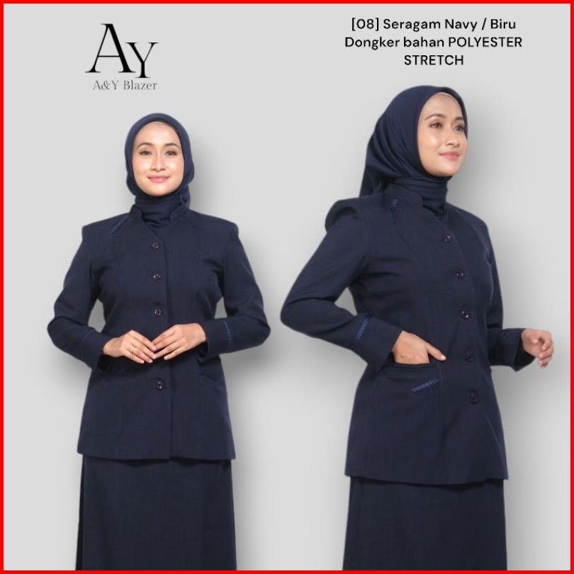 08 A Y Blazer Setelan Baju Seragam Blazer Wanita Warna Navy Biru Dongker Bahan Polyester Stretch Seragam Guru Pns Pegawa