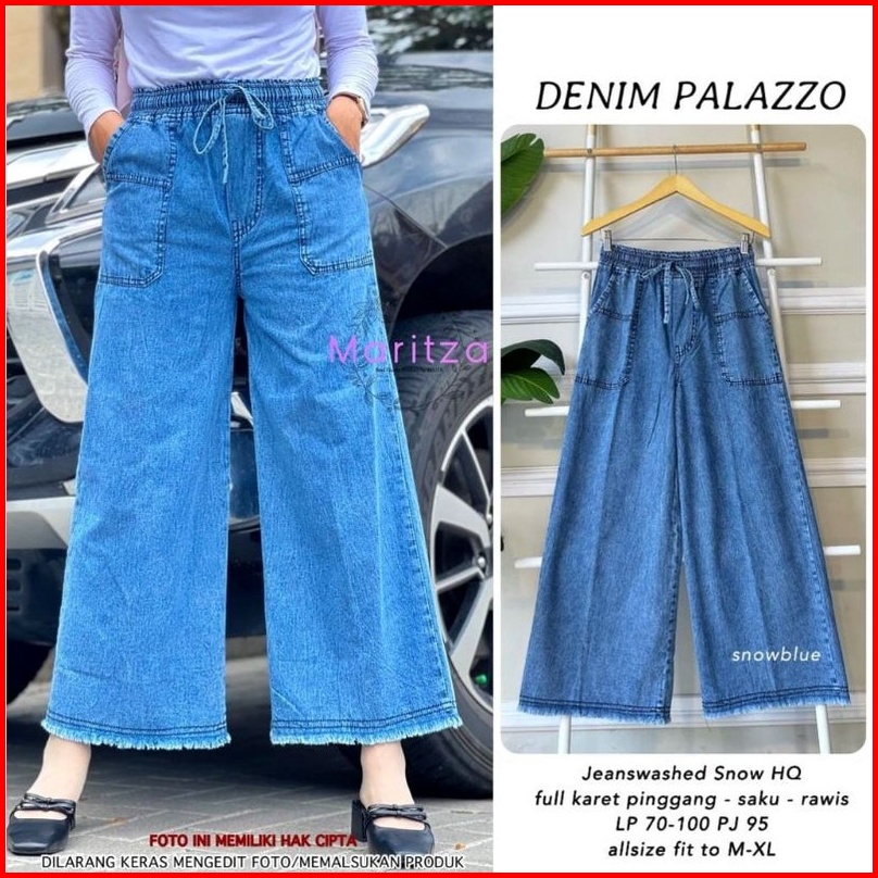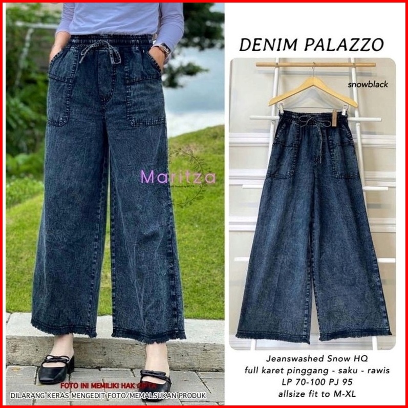 Celana Panjang Boyfriend Jeans Original Kulot Wanita Jumbo Palazzo Pinggang