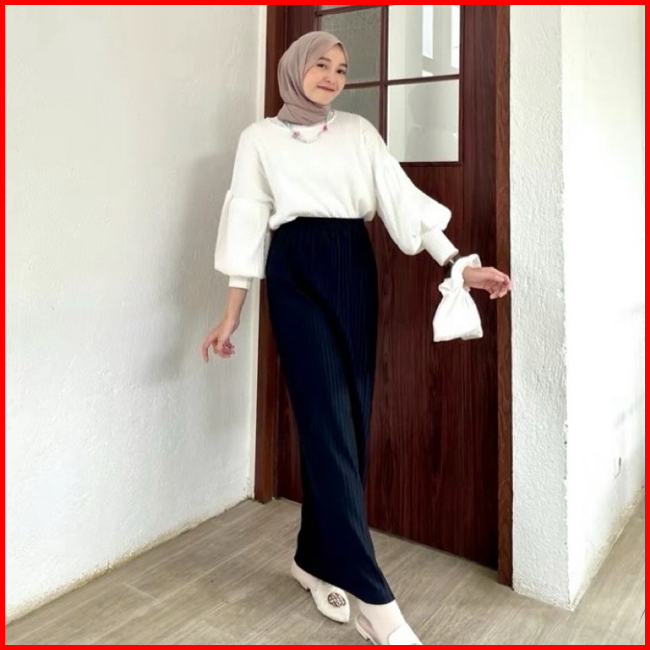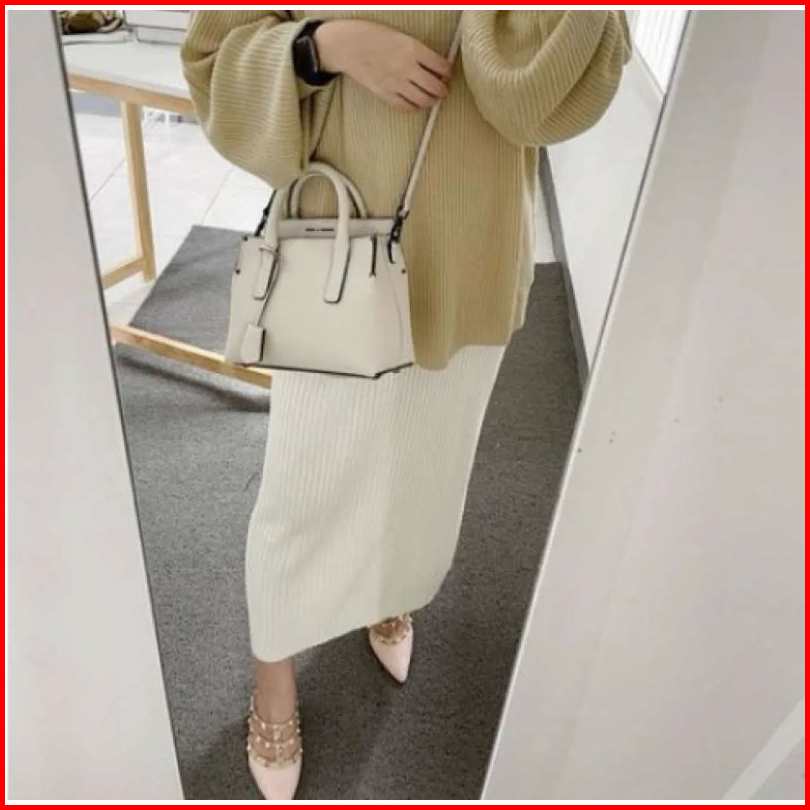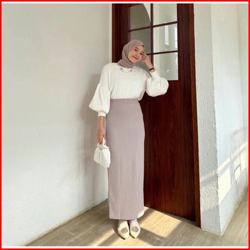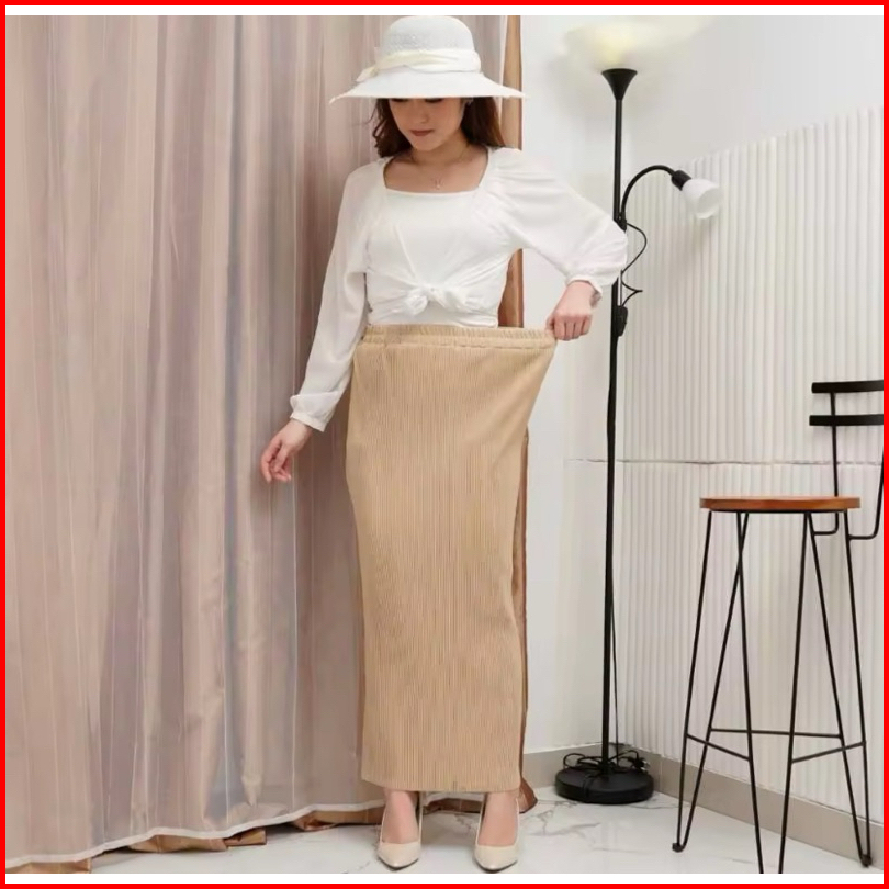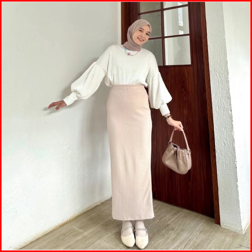 Elezza - Rok Span Rajut Knit Hornet Wanita Maxi Skirt Premium Hitam Krem Coksu