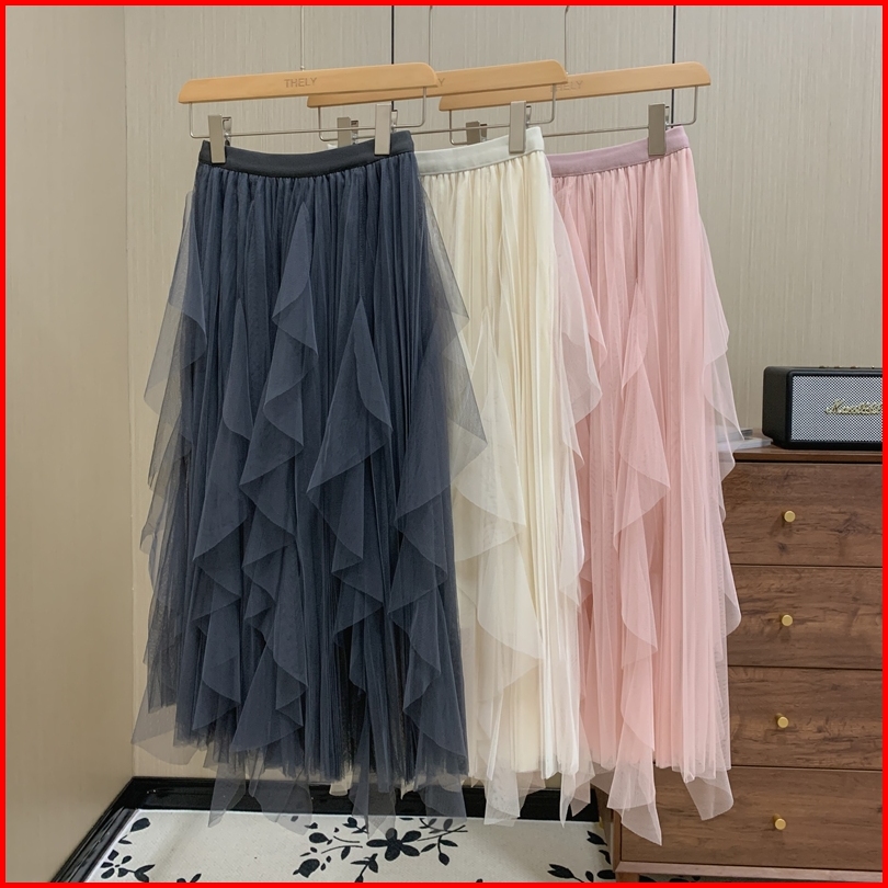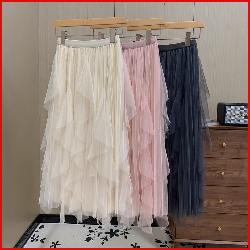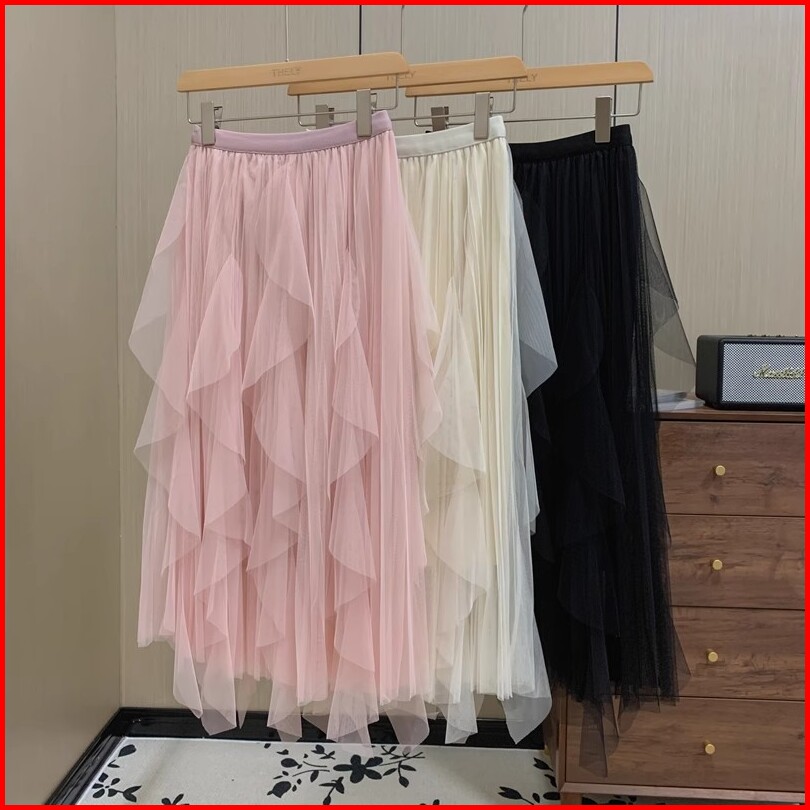 Rok Tutu Tulle Merah Muda Wanita Musim Semi Dan Musim Gugur 2025 Gaya Baru Pinggang Tinggi Panjang Menengah Ayunan Besar