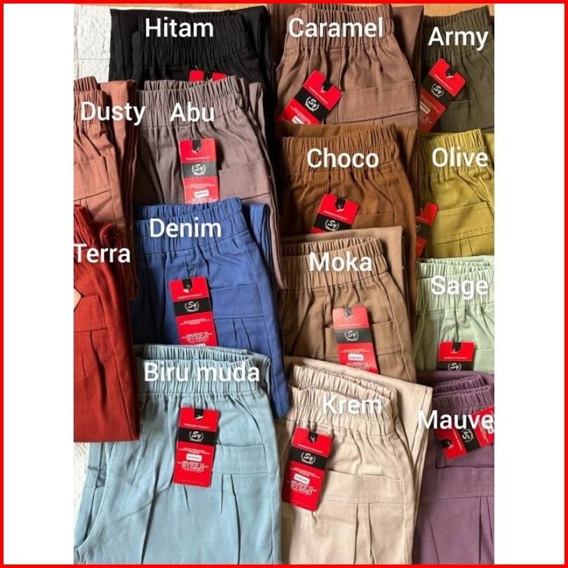 Hitam, Moka, Krem, Abu, Army, Sage, Olive, Mauve, Caramel, Dusty, Putih, Terra, Denim