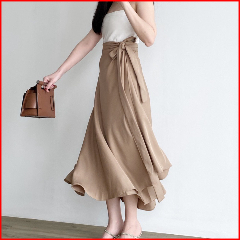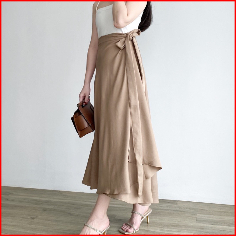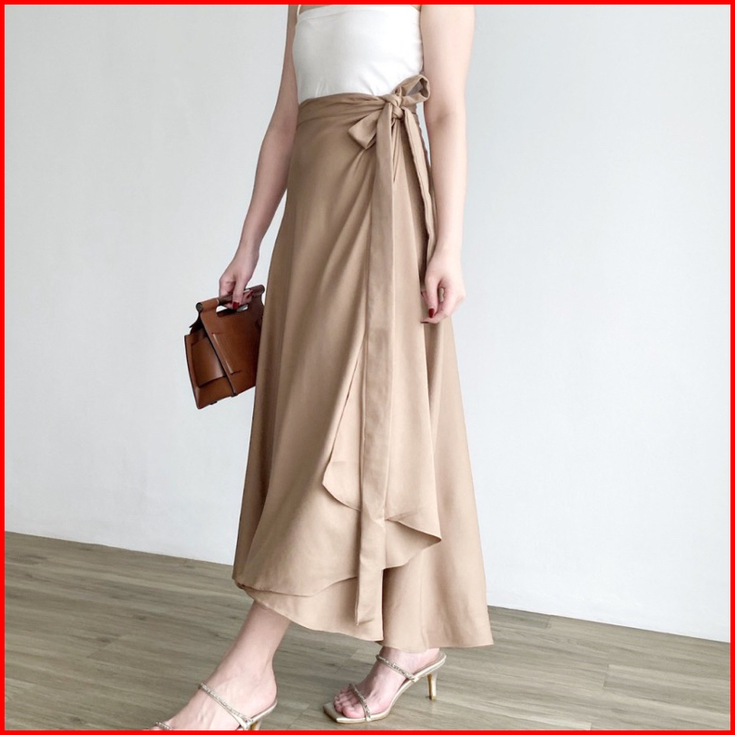 Luxxite Co Bisa Rok Lilit Flare Skirt Rok Panjang Wanita Korea A136