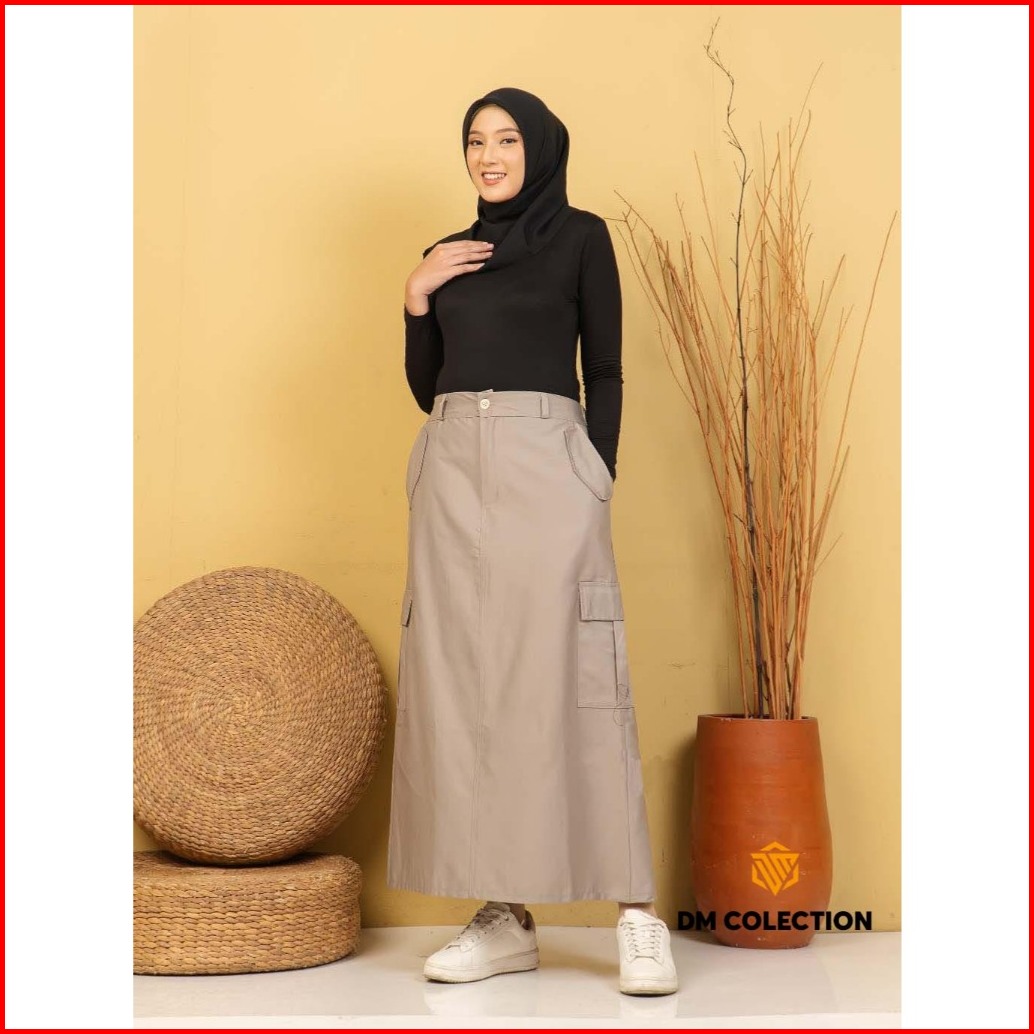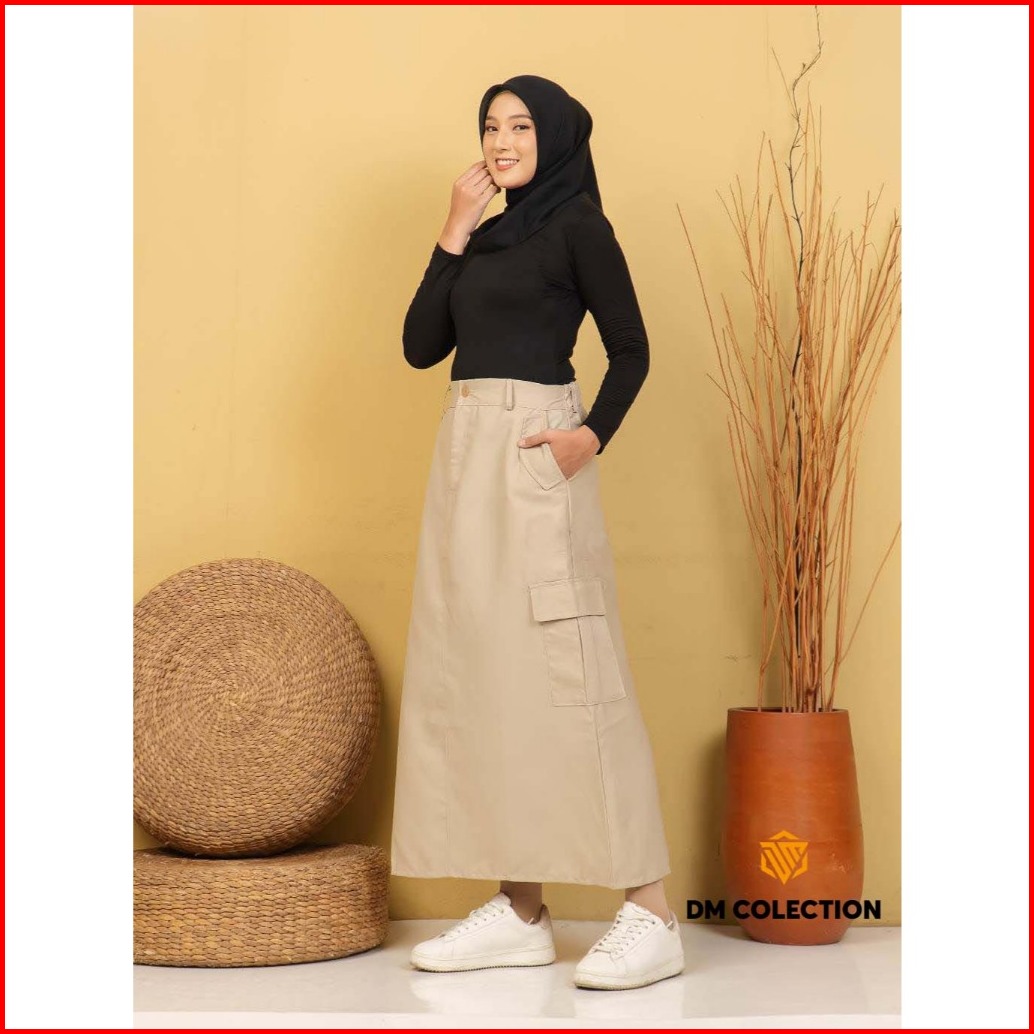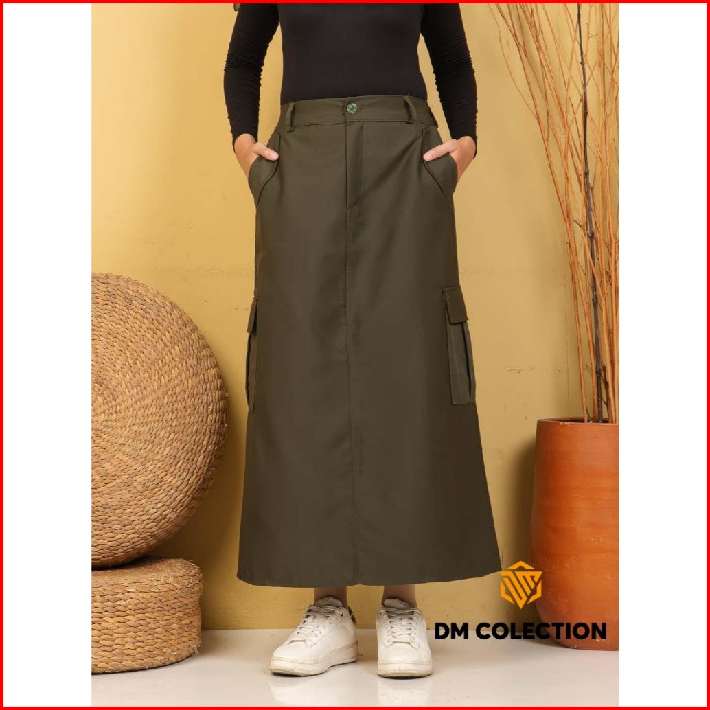 Cargo Skirt Wanita Rok Cargo Panjang A Line Rok Cargo Korean Style Carra Skirt Cargo Rok Kargo Kain Katun Twill Premium